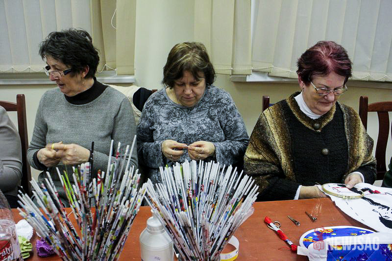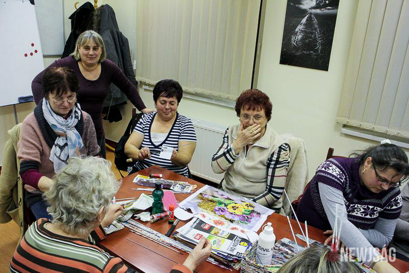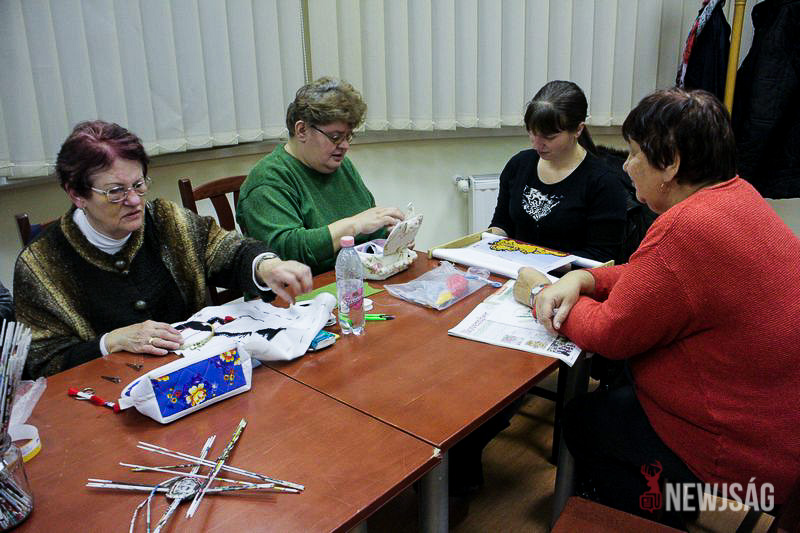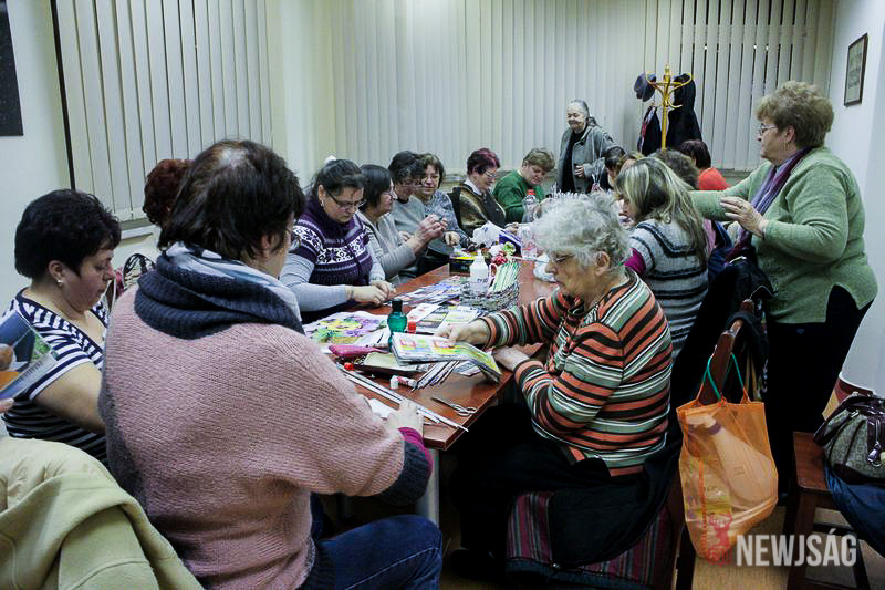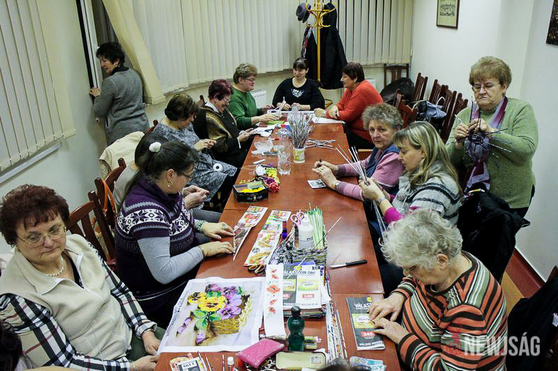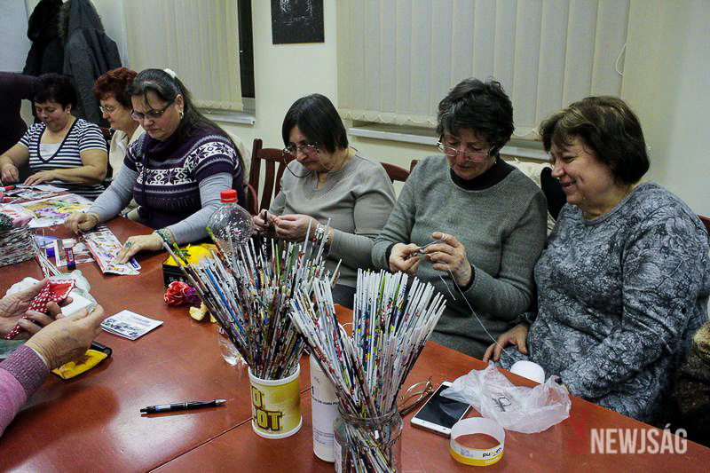 – Tagjaink között vannak néhányan, akik már kicsit profibbak a technikában. Ők tanítanak bennünket. Én magam is most kezdtem – árulja el a szakkör vezetője. Múlt héten már volt egy olyan foglalkozásunk, amikor különböző reklámanyagokból papírpálcikákat sodortunk. Akik akkor házi feladatként csináltak még otthon belőlük, ma már fonnak. Szerintem nem nehéz technikáról van szó, aki egyszer ráérez a ritmusára, utána nagyon gyorsan megtanulja.