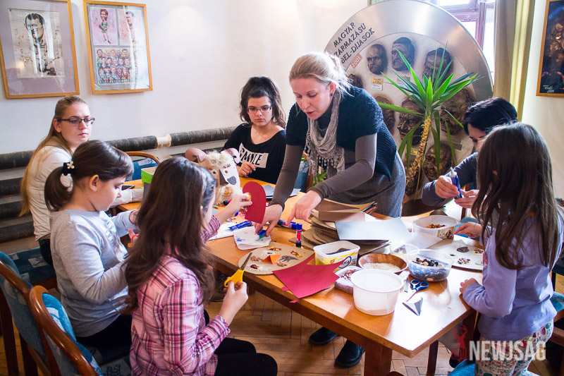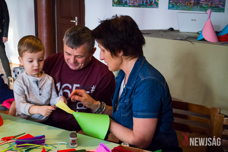 Az asztaloknál ezúttal is az alkotás dominált: szívószálból ördögnyelvet, magvakból busóálarcot és egyéb ötletes maskarákat lehetett készíteni. Középen a nagy kedvencnek számító óriástársasájáték foglalt helyet, aminek egy-egy mezője jutalomcukorkákat rejtett a helyesen válaszoló gyerkőcök számára.