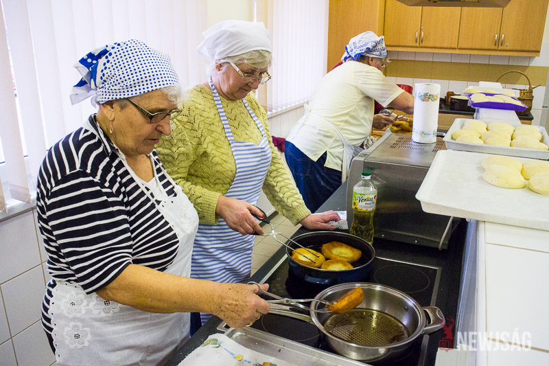 Lassan delet ütött az óra, mikor a Mozgáskorlátozottak Szarvasi Egyesületének tagjai először engedtek meg maguknak egy kis pihenést a nagy munka közepette. A kora reggeli óráktól kezdve ugyanis megállás nélkül dagasztották, gyúrták és szaggatták a fánkokat, a szomszédos helyiségben pedig egy időben öt tűzhelyen sültek a farsangi finomságok.