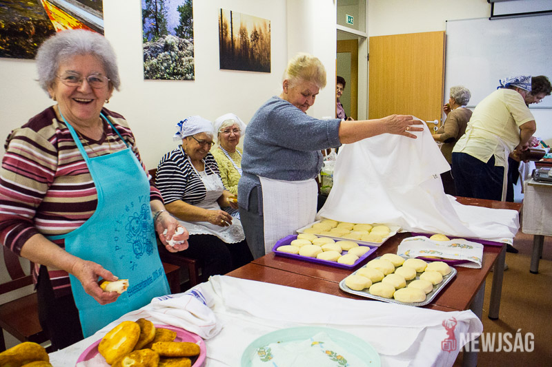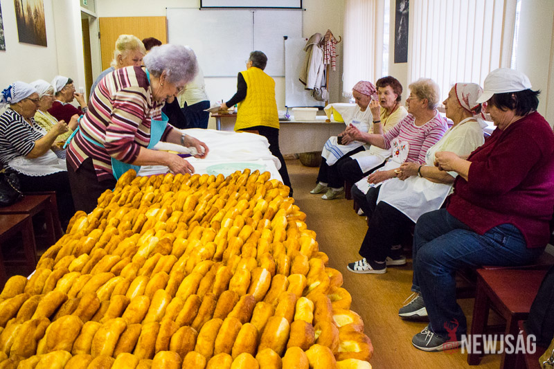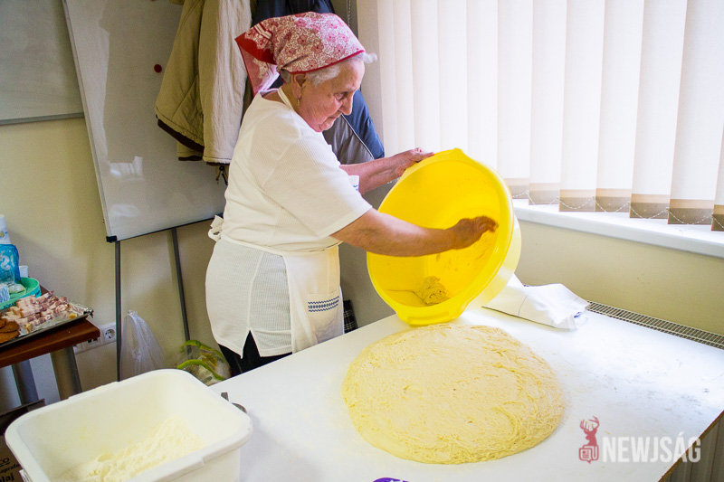 – Egy nagy adaghoz két liter tej, 5-6 evőkanál cukor, egy pici só, 25 dkg margarin, 3 tojás és 2 csomag élesztő kell. A tojást egy kicsit felverjük, a tésztát jól kikeverjük és összedolgozzuk. A liszt mennyisége változhat, 3-3,5 kg között van valahol, attól függően, mennyit vesz fel a tej – árulja el a jól bevált receptúrát a csapat egyik lelke.