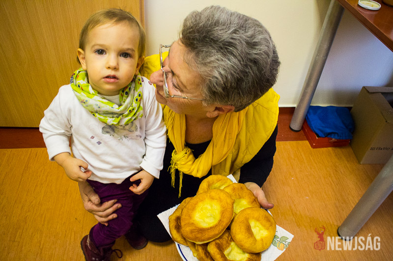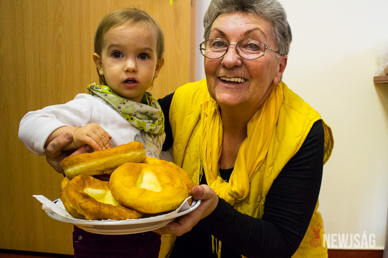 Az egyesület elnöke tyúkanyóként felügyelte a munkafolyamatokat. Közben nagy örömére meglátogatta másfél éves unokája, Márti is, akinek azonnal kóstolót nyomott a kezébe. Azt mondja, szeretnék minden évben jó hangulatban indítani a rendezvényeiket, amire kiválóan alkalmas ez a közösségépítő program.