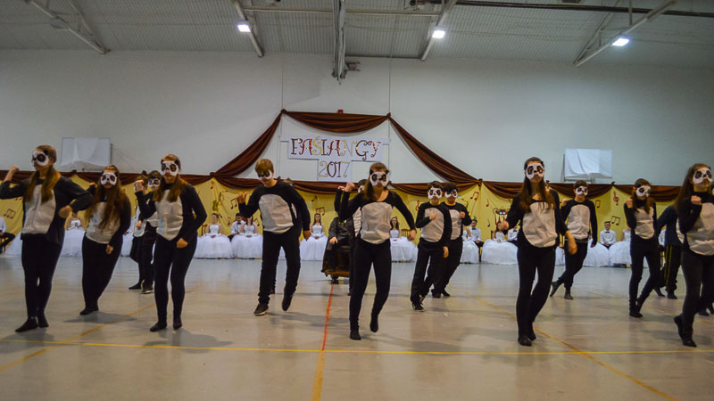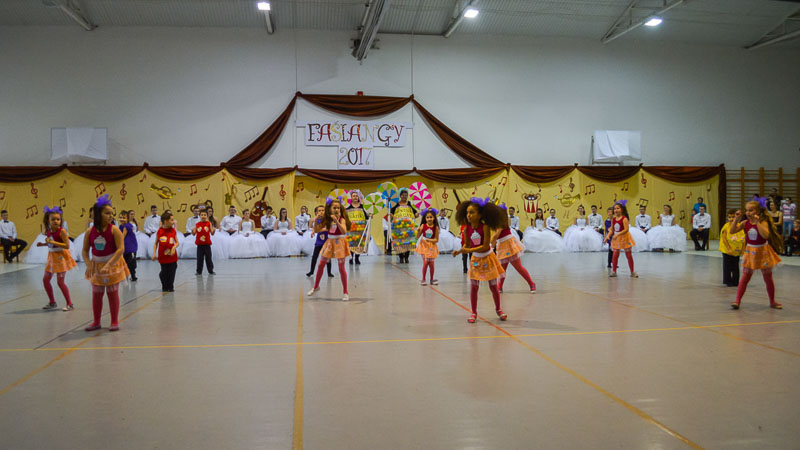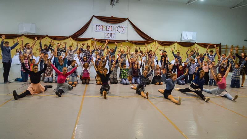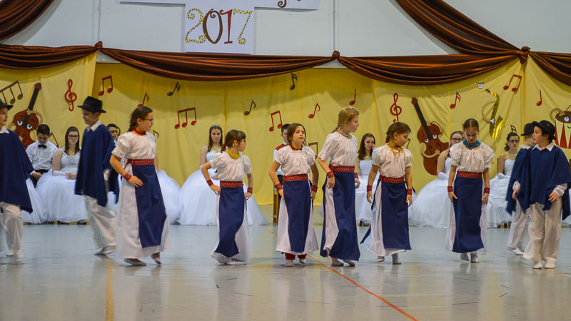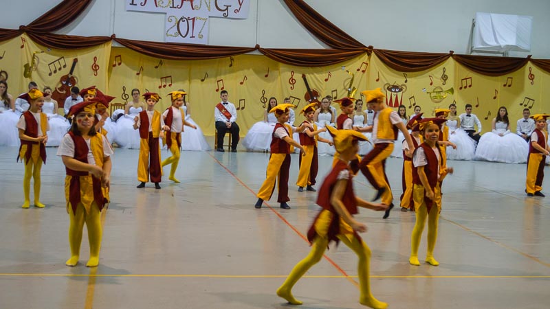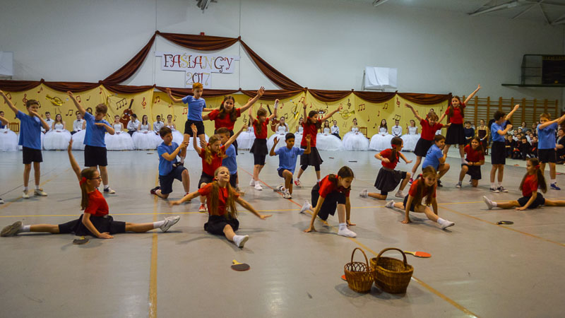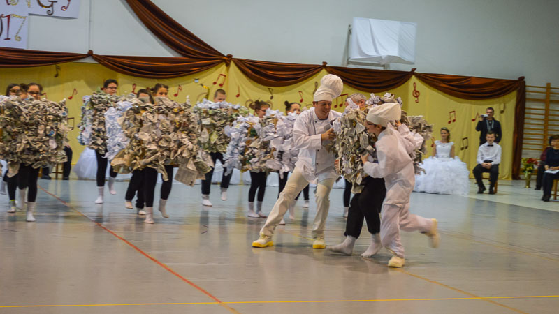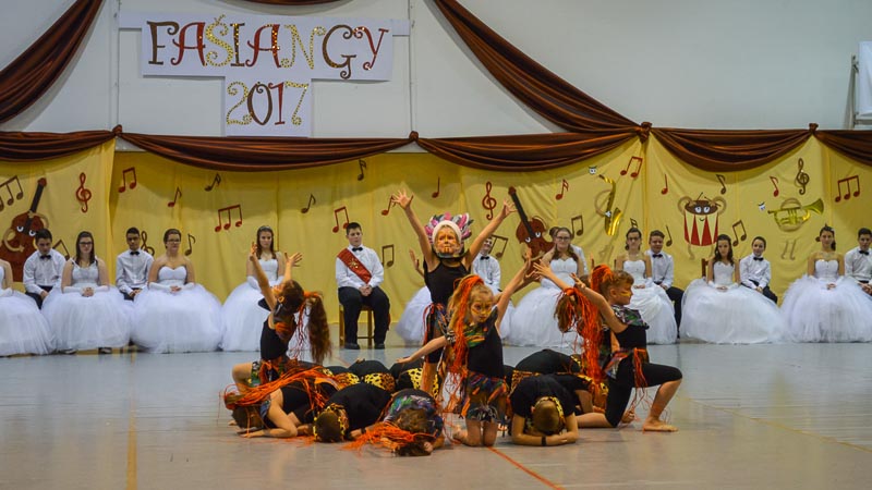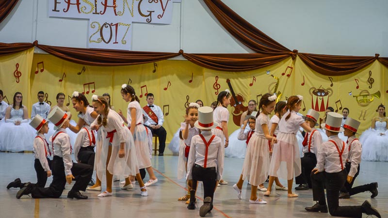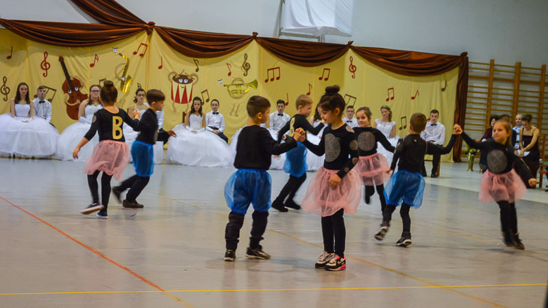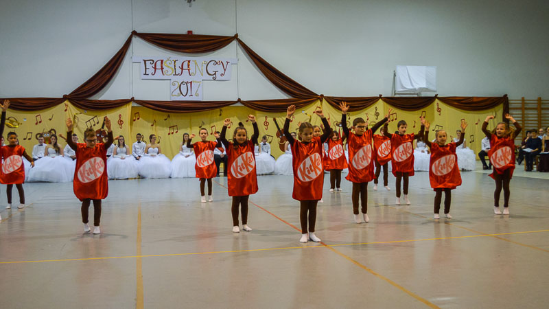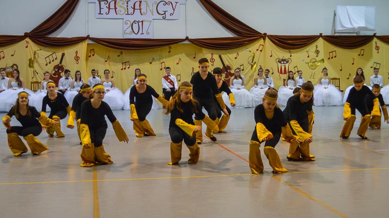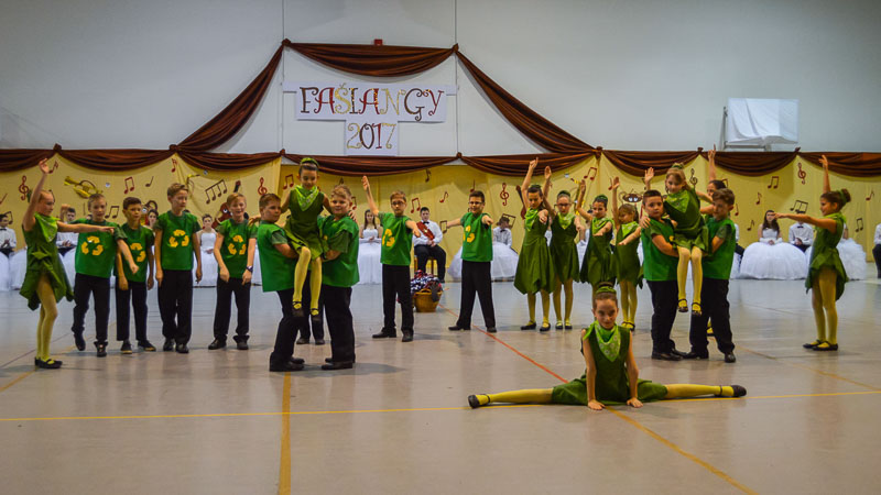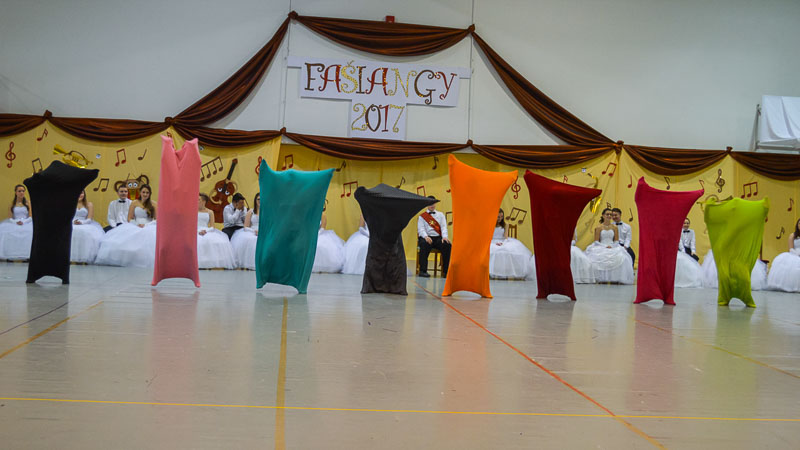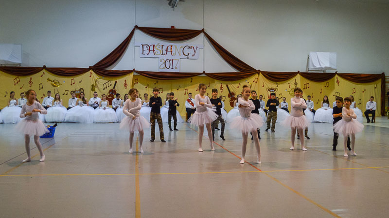 Torkos csütörtök és farsang farka vasárnap közötti jégtörő Mátyás napján, azaz február 24-én pénteken vidám, ötletes, színes jelmezek sokasága lepte el a szlovák iskola folyosóit és osztálytermeit. Eljött az izgalommal várt nap, amikor előkerült az álarc, a festék és 199 tanuló a délelőtt folyamán egyéni jelmezt öltött. Manók és velük manócskák is vegyültek a jó hangulatú, télűző forgatagba, ugyanis az óvó nénik és dajka nénik mellett bátran meneteltek kézen fogva az intézmény legkisebb maskarásai az óvodások is. Náluk is egész nap állt a maszkabál. Közben 78 szülő gondoskodott arról, hogy minden osztályba, tanári szobába és a rendezvényre is elegendő szendvics jusson. További 15-20 szülő pedig az átköltözést tette gördülékennyé az Alkotmány utcai Sportcsarnokba, ahol fejedelmi dekorációs háttér előtt kezdték nyitótáncukat a nyolcadikosok. A báli hangulatot idéző keringőzők táncos mozdulatait követte a nézőtérről Földesi Zoltán főtanácsos, az iskola nyugalmazott pedagógusai és kisgyermekükkel otthon lévő pedagógusai, a szülői munkaközösség elnökhelyettesei, a város más iskoláinak képviselői és valamennyi jelenlévő szülő, pedagógus és diák. Podani Anikó és Fazekas Stefánia műsorvezetők szlovákul és magyarul elhangzó szavára egymás után léptek színpadra az osztályok. Így láthattunk az elsősök előadásában rosszcsont ördögöket, édes cukorkákat és színes, fürge buborékokat. A másodikosok táblás csokoládé, éber bennszülött és vidám bohóc módjára járták táncukat. Őket követte a harmadik évfolyam, mint a modern menyasszonyok és vőlegények, a perui indiánok és a gengszterek közé keveredett balerinák. A természetvédelem jegyében lépett színre a 4.a osztály, majd őket a 4.b követte, mint aktív asztali tenisz sportoló csapat. A retro diszkó sztárjait tisztelhettük az 5.a osztályosokban, majd egy osztálynyi popcorn pattogott a színpadon. Gésákat védelmező ninják jelentek meg kisvártatva az 5.c színeiben, akiket a 6.a,6.b és a 6.c osztály ötletes, közös táncos produkciója váltott fel. Szellemként kísértettek a 7.a osztály tanulói, akiket tanáraik szellemirtó ruhában reguláztak meg. A 7.b-sek minden mozdulata a pandák viselkedéséről árulkodott. A szülők idén is tudtak újat mutatni, eleven meglepetéstáncuk a „paplanhuzatban” fergetegesnek bizonyult. A jövő tanárai robotként léptek színre, egy földönkívülit próbáltak integrálni oktátási-nevelési rendszerükbe. A program végén köszönet és virágcsokor illette az intézmény igazgatóját, Nyemcsok Mátyásnét és az iskola tiszteletbeli igazgatóját Medvegy Pálnét, valamint a nyolcadikosok nyitótáncának megálmodásában és megtanításában tevékenyen segítő Sinkáné Nyemcsok Erikát. A farsang egész napos jelmezes programja kötetlenebb stílusú diszkóval, jó hangulatban, élményekkel gazdagodva fejeződött be.
