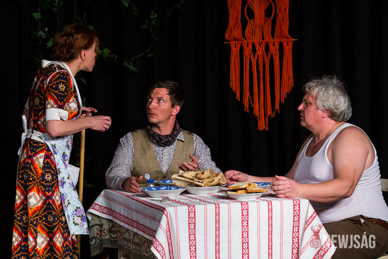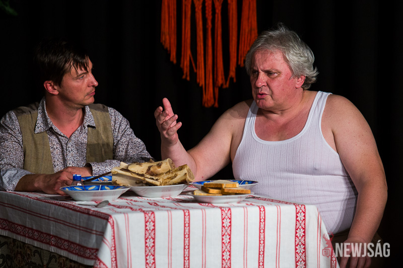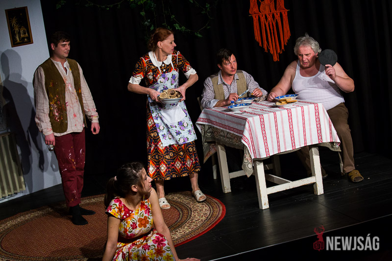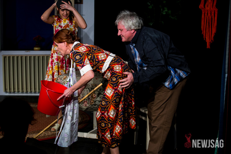 Az Anyát alakító Dósa Zsuzsa az állandó készenlétével, a családot összetartó erejével szinte végig „pörögte” az előadást, azaz olyan anyát mutatott meg a közönségnek, aki feláldozza magát a családért – ám ez számára egyáltalán nem áldozat. Dósa Zsuzsa oly sok arcához, most egy újabbal ajándékozta meg a közönséget, játékával még mindig tud tőle szokatlant mutatni – ezúttal ezt az Anya figurát – bravúrosan. Férjét Nádházi Péter alakította, az eddigi visszafogott szerepei után, ezúttal egy teljesen más alakot formált meg kiválóan.