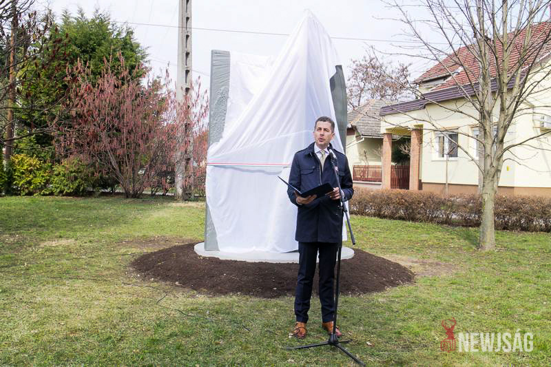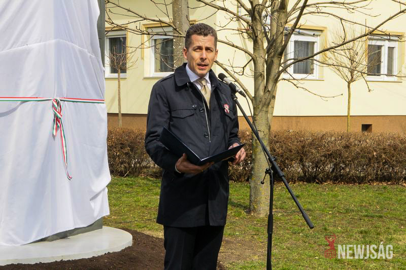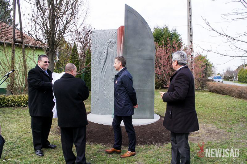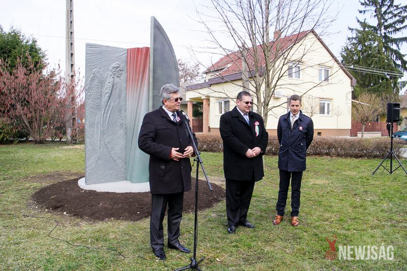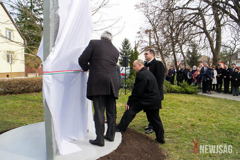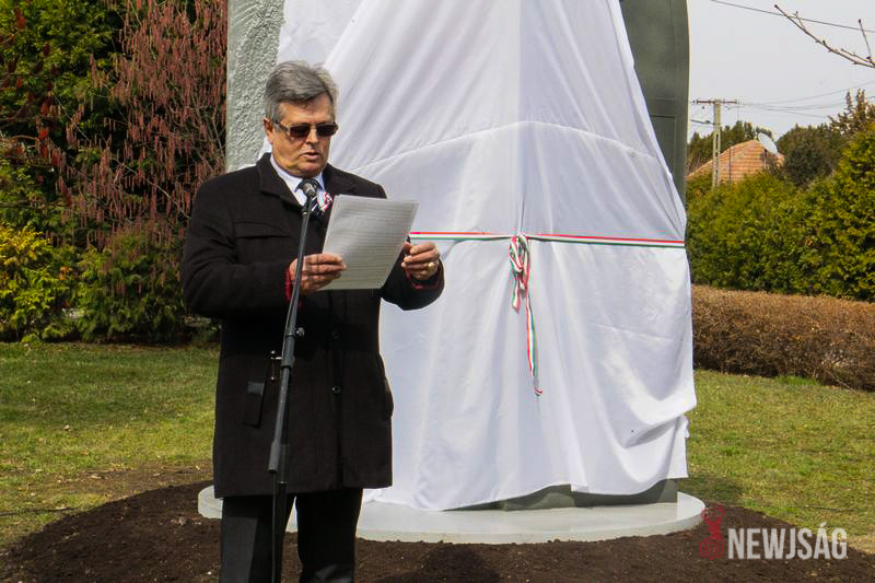 A szövetség elnöke köszöntőjében röviden felidézte az emlékmű születésének történetét, ami 2015-re nyúlik vissza. Ekkor nyújtottak be pályázatot az ’56-os Emlékbizottságnak, amely országszerte lehetőséget teremtett ún.”büszkeségpontok” létrehozására. A képzőművészeti alkotás költségvetése bruttó 4,5 millió Ft-ot tett ki, amelyhez a baráti szövetség 500 ezer Ft-tal járult hozzá. Az eredeti elképzelés szerint október 23-án avatták volna fel, azonban bürokratikus akadályok miatt erre csak néhány hónappal később kerülhetett sor. Az emlékmű Borbás Márton szobrász munkáját dicséri, a kivitelezést pedig az Argomex Kft. végezte.