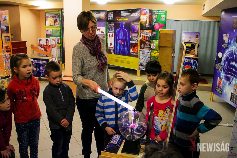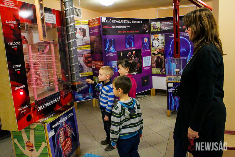 – Néhány évvel ezelőtt egy fizikai kiállítást fogadtunk, ami a tervezéstől egészen a kivitelezésig egy kreatív házaspár keze munkáját dicséri – avat be a részletekbe Kugyeláné Décsei Mónika, az intézmény munkatársa. – Nagy sikert aratott, mert a nehezen értelmezhető folyamatok a kísérleteken keresztül világossá váltak, ráadásul kiváló szemléltetési lehetőséget biztosított a pedagógusok számára. Az ötletgazdák nem álltak meg ennél a pontnál, hanem időközben létrehoztak egy biológiára irányuló tárlatot is, ami közérthetően mutatja be a testünket.