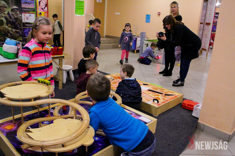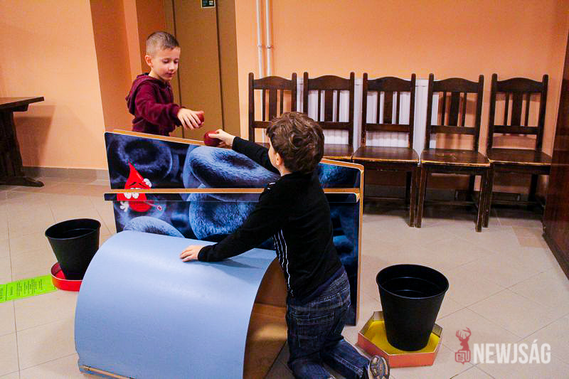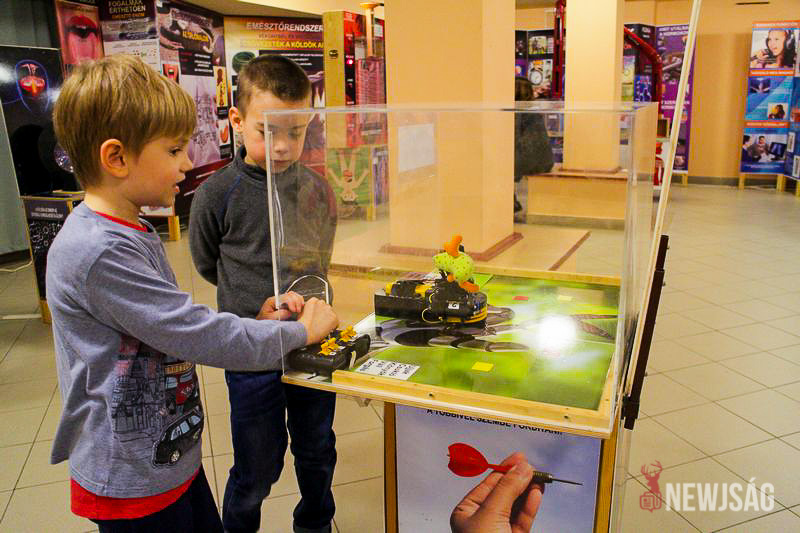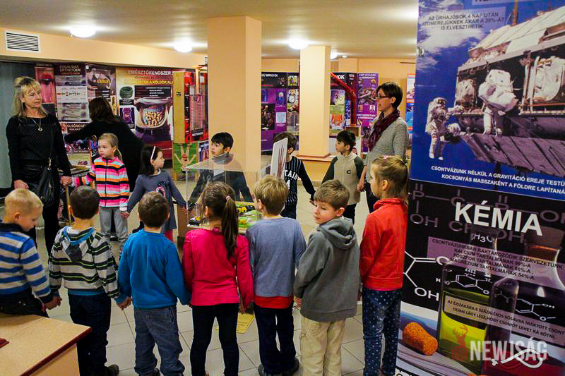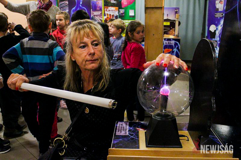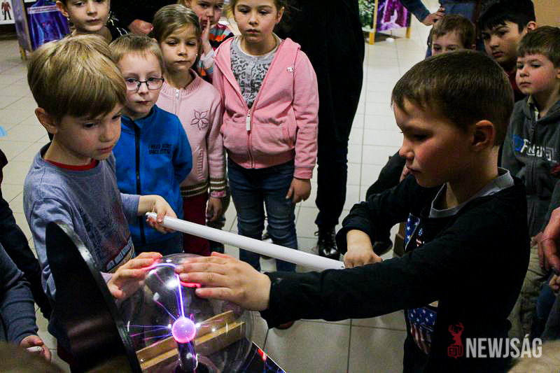 A vándorkiállítás az óvodáskortól egészen a felnőttekig bezáróan rejt érdekességeket. Ottjártunkkor épp a legkisebbek, a Bacsó utcai óvoda nagycsoportosai vették górcső alá az ötletes fizikai kísérleteket, miközben érdeklődéssel hallgatták az útmutató információkat. Először a mindent a szemnek, semmit a kéznek elve működött, és csak ízelítőt kaptak a rájuk váró játékokból, a szórakoztató tárlatvezetést követően pedig mindenki belevethette magát az ötletgazdag feladatokba.