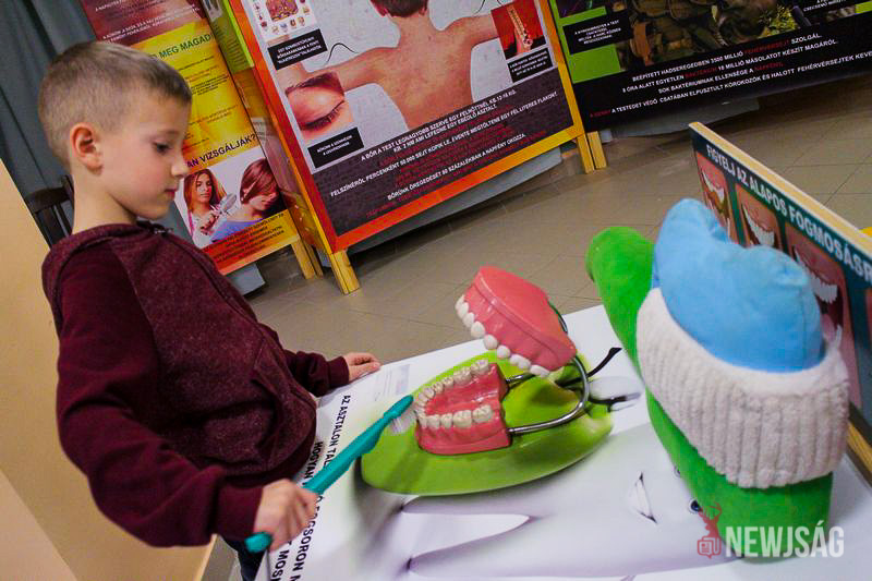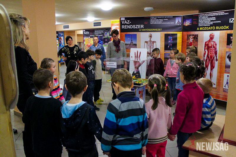 – A testünkkel épp ezekben a hetekben foglalkozunk. Elsőként a vázrendszert és az izomzatot ismertük meg, a második héten pedig az érzékszervekről tanultunk. Ennek a kiegészítését és a folytatását látom ebben a kiállításban. Jó dolognak tartom, hogy a gyerekek kipróbálhatják a különböző eszközöket, így még szemléletesebben tapasztalhatják meg testünk működését – állítja rövid szemrevételézést követően Veszterné Tóth M. Gyöngyi óvodapedagógus, aki ugyancsak örömmel kapcsolódott be a játékos tanulásba.