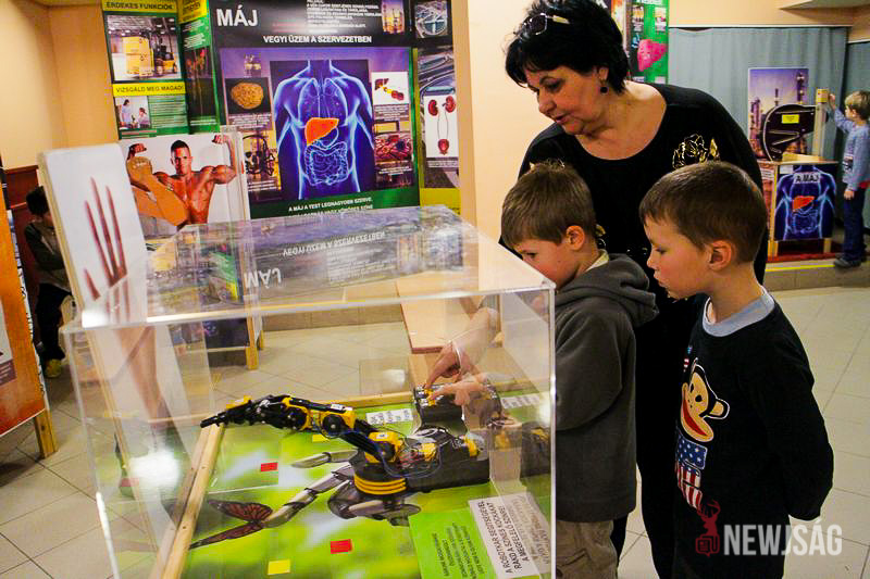 – Annyi klassz dolog van, nem is tudom, melyiket próbáljam ki – mondja futtában az öt éves Körösparti Zsombi, aki folytatásként épp a vérpumpáló szerkezetet vette célba. – A legjobban a robotkar tetszett, ami mindenféle hangot adott ki, és egy krokodilt is fel lehetett vele emelni.