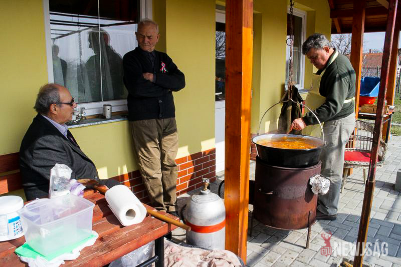 A szülinapi rendezvény ebéddel folytatódott. A galuskával tálalt bográcsos sertéspörkölt elkészítését az urak vállalták magukra, a hölgyek süteményekkel, Uhljar Mátyásné Margóka pedig bónuszként négylevű lóherét formáló mézeskaláccsal kedveskedett a vendégeknek.