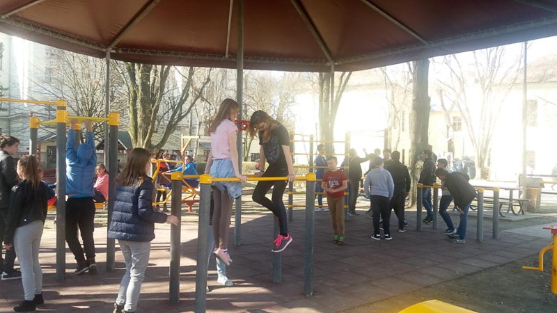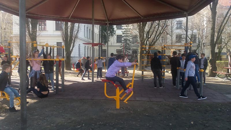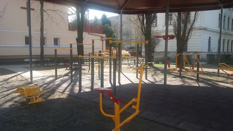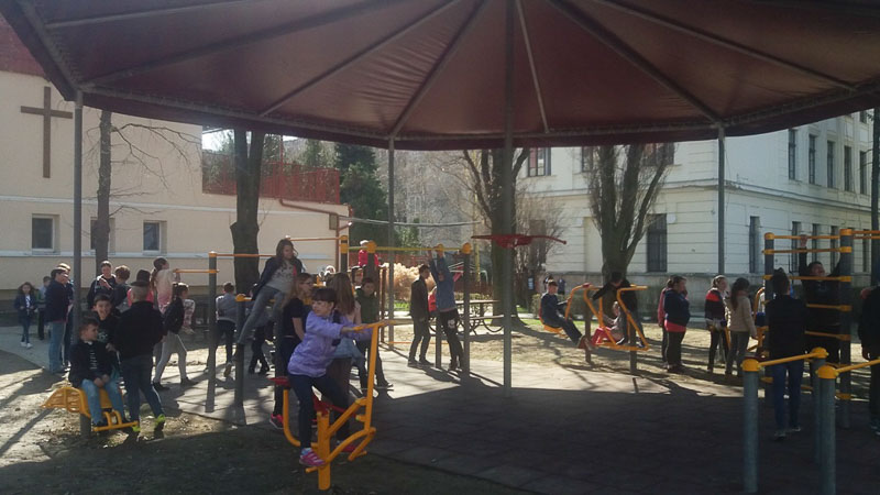 Az intézmény családbarát filozófiáját követve családi délutánok, Gyakorlós és főiskolai rendezvények remek helyszíne a kialakított kondi park.