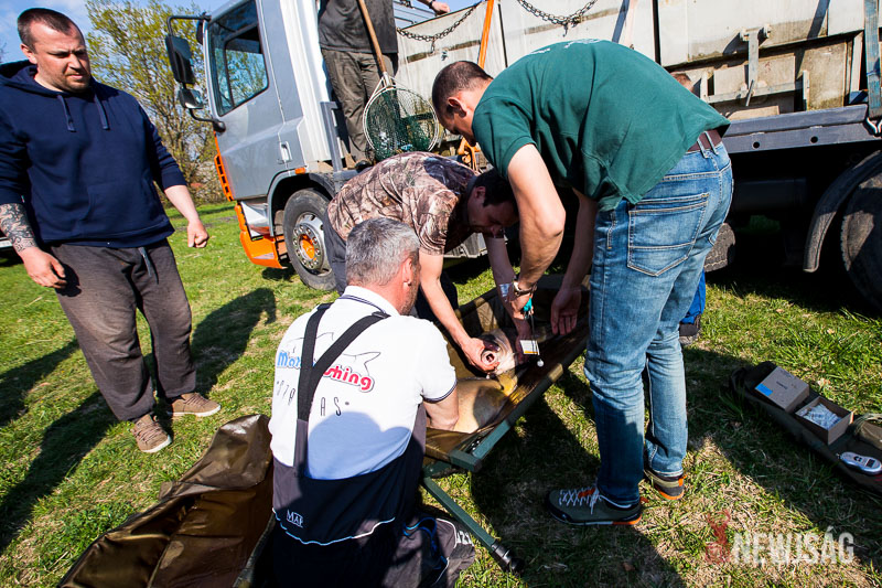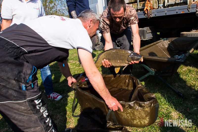 Időközben a KHESZ március közepétől már 122 mázsa horogérett pontyot telepített a holtágba, ám most megérkeztek az igazi nagyágyúk, a 8-10 kg-os pontyok, amiket a haltermelők kifejezetten horgászvizek halasításához nevelnek ekkora méretűre.