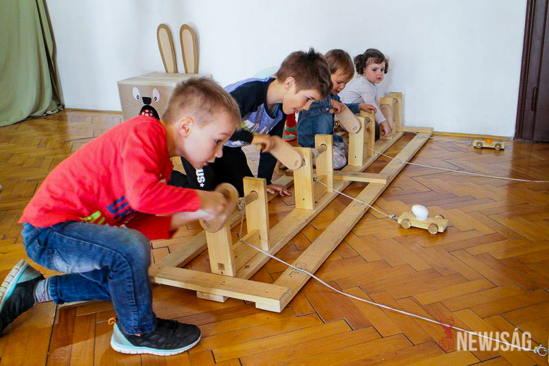 A nagyterem közepén ezúttal is az óriástársasjáték csábította játszani a gyerekeket, az asztaloknál pedig kopogtatók, ünnepi dekorációk és díszek készülhettek. A szervezők a legkisebbről sem feledkeztek meg. A sarokban „vad” kocsihúzó verseny és labdagurítás folyt, az utóbbi esetében stílszerűen egy kartondobozból készült nyuszi szájába kellett célozni.