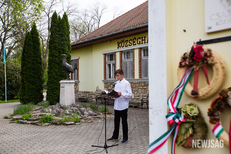 Molnár József polgármester elsőként a birtokai révén Csabacsűdhöz kötődő oktatáspolitikus, báró Eötvös József gondolatát idézte: „Vannak fájdalmak, mint a himlő, amin csak egyszer megyünk keresztül, de melyek, mint ez eltörölhetetlen nyomokat hagynak maguk után.”