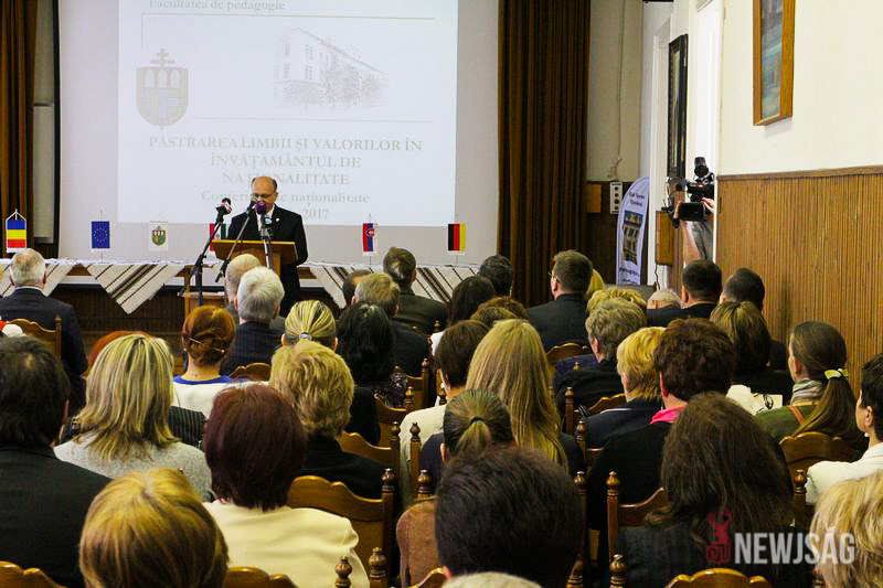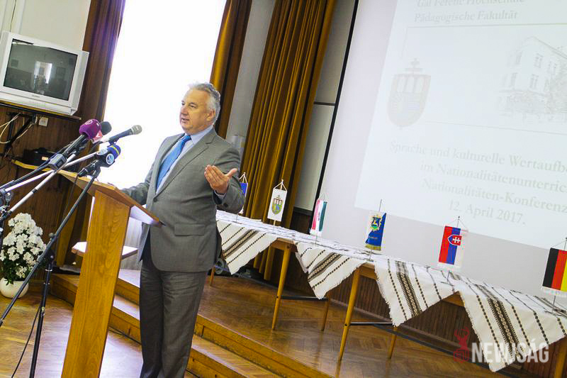 – Úgy érezzük, hogy most már végállomáson vagyunk, megérkeztünk – utalt köszöntőjében dr. Lipcsei Imre, a Pedagógiai Kar dékánja a 2014-ben történt fenntartóváltásra, ami lehetővé tette az itt folyó képzés stabilizálását. Az intézmény több mint ötven éve foglalkozik nemzetiségi képzéssel, amelyre fókuszálva már hatodik alkalommal rendeztek konferenciát. Az április 12-én tartott szakmai napon a nyelv és az értékmegőrzés témakörét járták körbe, a német, szlovák és román szekcióülések keretében.