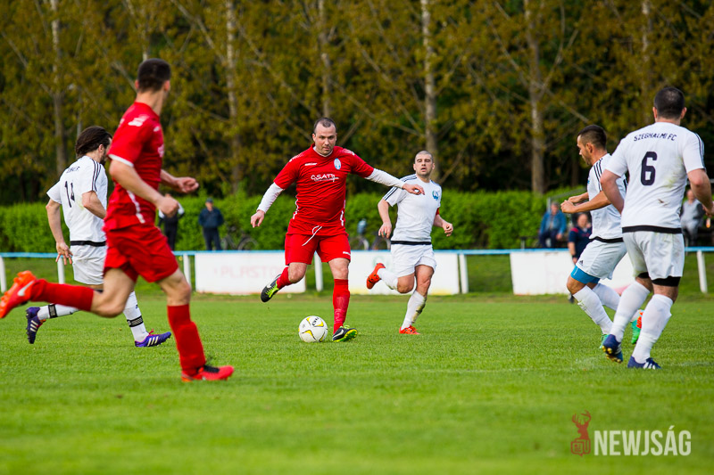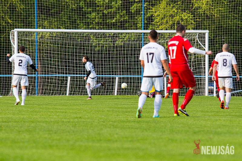 Már éppen kiegyenlítetté kezdett válni a meccs, amikor Mészáros a 18. percben, az ötös sarkáról leadott lövésével, megszerezte a vezetést a Szeghalomnak. 0-1.