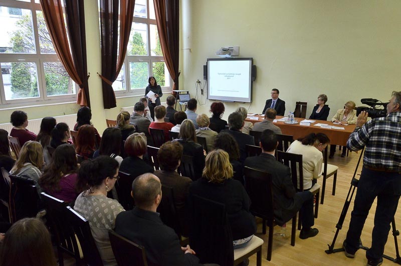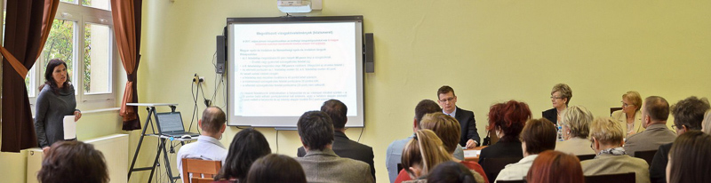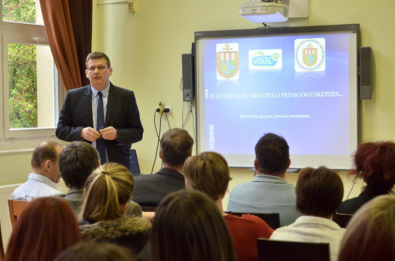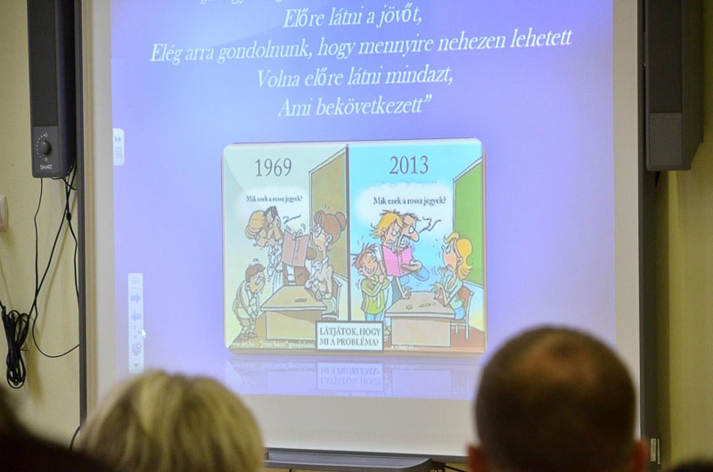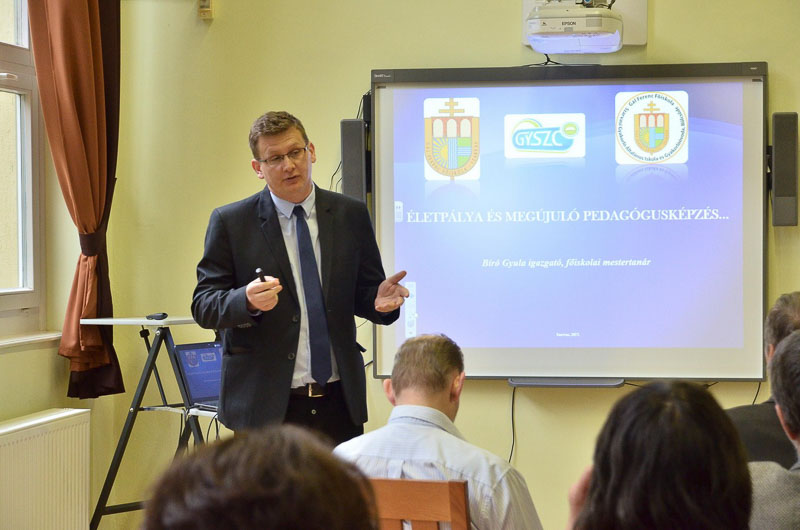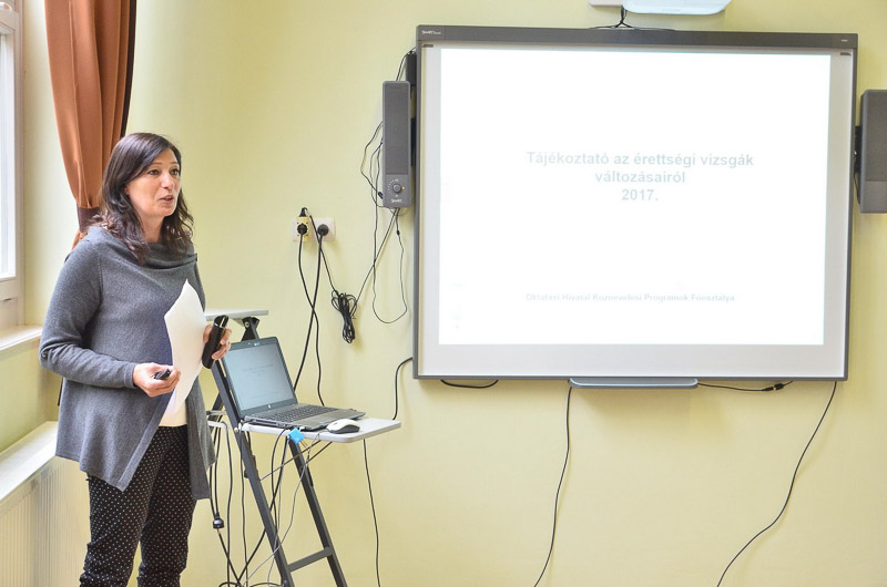 Kohut Andrásné, iskolánk igazgatója üdvözlő szavai után Kovács Zsuzsanna, a Gyulai Szakképzési Centrum főigazgatója nyitotta meg a szakmai tanácskozást. Ezután Bíró Gyulának, a Gál Ferenc Főiskola mestertanárának, valamint az SZGYÁI igazgatójának élvezetes stílusú előadását hallgathattuk meg a megújuló pedagógusképzés témakörben. Még a délelőtt folyamán megismerkedhettünk a közép- és emeltszintű érettségi vizsgákkal kapcsolatos törvényi háttérrel, a vonatkozó jogszabályokkal Belleli Anna, a Békés Megyei Kormányhivatal Hatósági és Oktatási Osztály munkatársának tolmácsolásában.