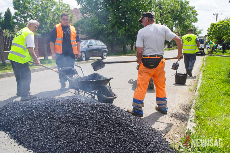 A Dózsa György utcán a munkálatok már előrehaladott állapotban vannak, múlt hét elején kezdődött meg az aszfaltozás. Az útszakasz várható befejezési határideje május 31-e.