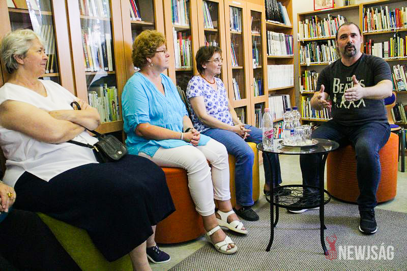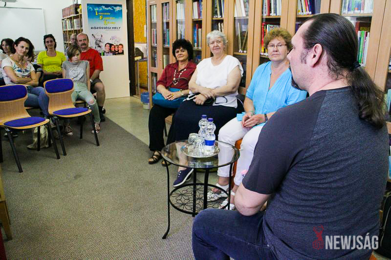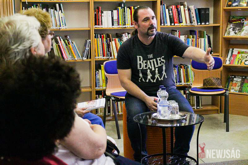 Az író június 1-jén egy egész napot Szarvasnak szentelt. A délelőtt során a Szlovák Általános Iskolában és a Benka Gyula Evangélikus Általános Iskolában tartott rendhagyó irodalom órát, délután pedig a Városi Könyvtárban találkozott a gyermek és felnőtt közönséggel. A sokat látott szerzőről kiderült, széleslátását részben annak köszönheti, hogy az élet számos területébe belekóstolt. Mint bemutatkozásában is olvasható: „volt már biztonsági őr, telefonos szupportos, kábelhúzó, katona, rendező, asztalos, rendszergazda, vokalista, kőművessegéd, zeneszerző, eladó, grafikus, újságíró, tanár, vágó, szövegíró, és marketing izét is csinált. Aztán írt egy könyvet, az lett a címe: Sárkány kétszer, de nem kellett senkinek, úgyhogy írt még egyet.”