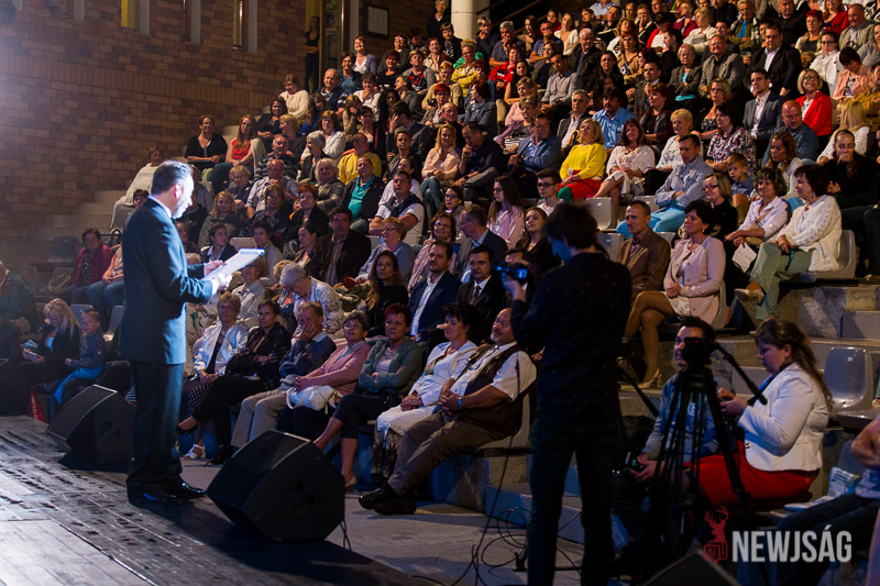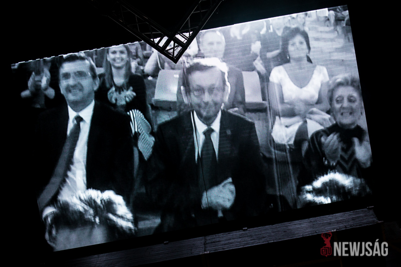 Két blokk között bemutatta az est díszvendégeit. A nyitógálára Babák Mihály polgármester és Fekete Péter meghívására, hivatalához illően, középen, de azért a jobb oldalon, a 2. sor 3. számú székén ült Domokos László, korábbi országgyűlési képviselőnk, Szarvas város díszpolgára, az Állami Számvevőszék elnöke, de eljött Dankó Béla, jelenlegi országgyűlési képviselőnk, és Závogyán Magdolna, helyettes államtitkár, valamint városunk legújabb díszpolgára, Erdélyi István, a Gallicoop elnöke is.