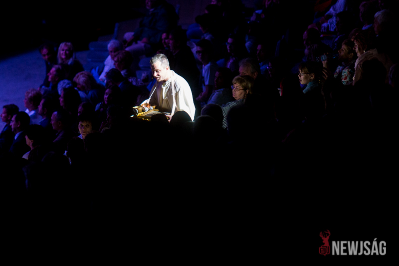 A produkciók közül kiemelte az egyelőre még zsákbamacska státuszban levő Aranybojtár címűt, amit ma kezd el rendezni Debrecenben, de a színpadon vázolt elképzelése alapján nagyon látványos lesz a koncert-diafilmvetítés-színházi-cirkuszi mix.