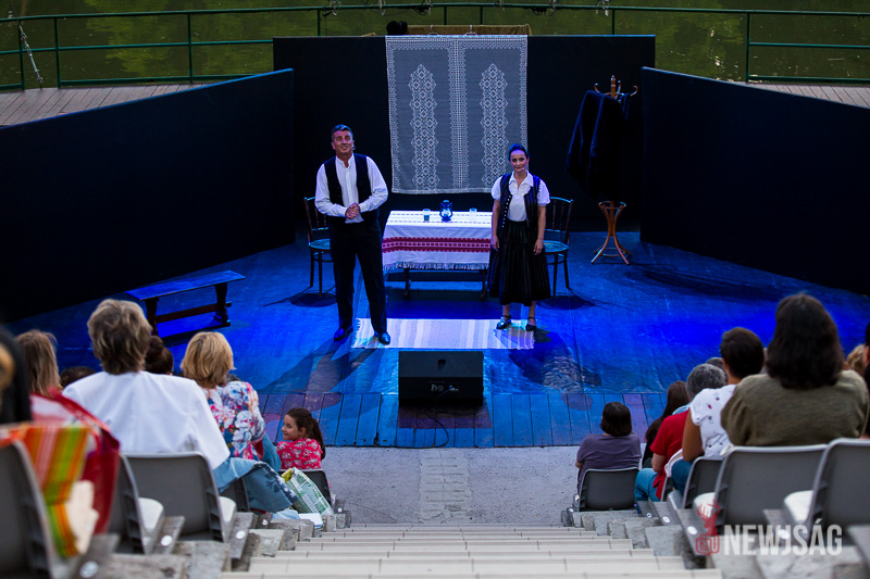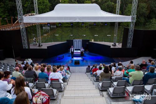 A Vízi Színház színpadán hetedik éve látható a Vers a víz fölött sorozat. Hétfőn este az idei évad első előadói Buzogány Márta és Frech Zoltán, a Gödöllői Erzsébet Királyné Színház művészei voltak, akik Székelységek című műsorukkal álltak színpadra Buzogány Béla rendezésében. Az este háziasszonya dr. Hanyecz Katalin, az Arborétum igazgatója volt.