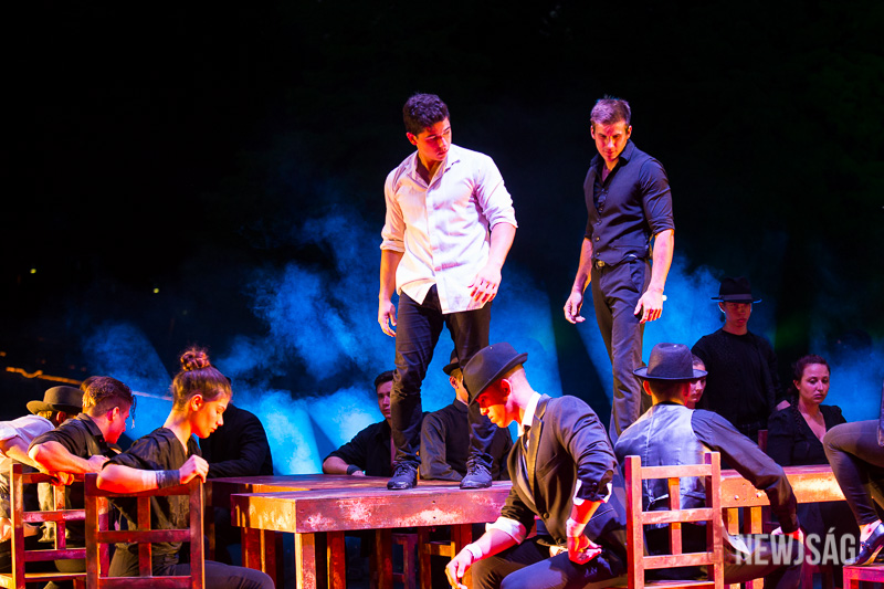 2014-ben a Baross Imre Artistaképző volt az első cirkuszi produkció Szarvason a Vízi Színházban, de akkor még levegőszámokat nem tudtak bemutatni a fellépők. A csütörtöki előadáson azonban lélegzetelállító mutatványokat láthatott a közönség a fiataloktól: feszes drótkötélen, kínai rúdon, handstand-on (kézállás), tissuen (függönytánc), gurtnin, kötélen, hatalmas karikán, trapézon és ugróasztalon csodálhattuk meg művészetüket. A produkciók a történetbe építve mondták el a két veronai szerelmes történetét maffia környezetbe helyezve. A cirkuszművészet elemeit ötvözték tánccal, harcművészeti elemekkel és színészi játékkal. A zene végig szólt, ezért minta táncjátékot láttam volna akrobatikus mozgással fűszerezve, de itt az utóbbi kapott főszerepet. Izgalmas, magával ragadó este részesei lehettünk.