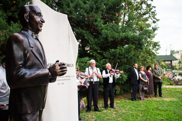 – Nem minden településnek volt ilyen tehetséges embere. Én Mótyán Tibivel és egy szarvasi delegációval 2003-ban köszöntöttük a 80. születésnapján, és ezerötszáz ember előtt tótul szólaltunk meg. Büszkék voltunk rá, mert a miénk. Ugyanabban az évben elmentem Óbudára, ahol a közönség szintén nagyon szerette őt. Kikérdeztem az anyakönyvi kivonatát, zavarba akartam hozni, de nem lehetett. Rögtön vette a lapot, és mindenre szépen válaszolt – nosztalgiázott Babák Mihály polgármester az életnagyságú emlékmű előtt állva.