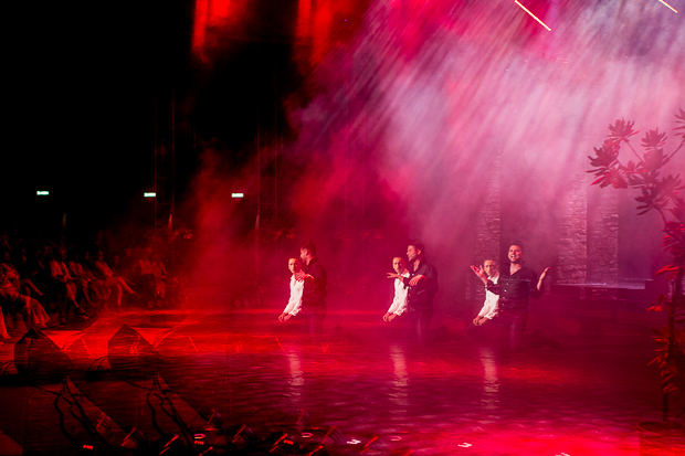 Már a belépés különleges volt, hiszen a nézők vörös szőnyegen léphettek be a nézőtérre, de zöldnövények is díszítették két oldalt a bejáratot. Látszott, hogy a szervezők ügyelnek a részletekre is. A színpadon a Valahol Európában falai fogadták nézőket (Nagy Szilvia alkotása), amelyek teljes kilátást engedtek a szemben lévő mocsári ciprusokra.