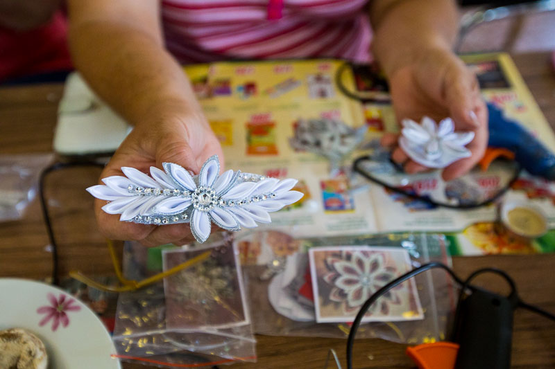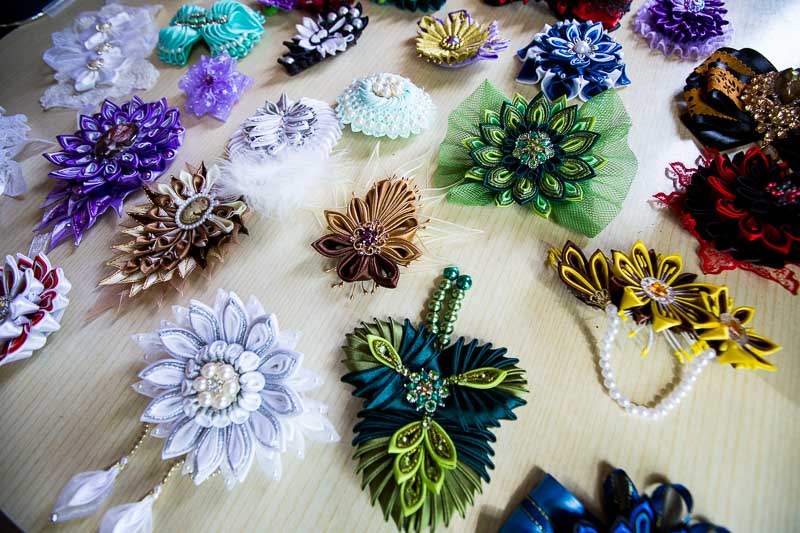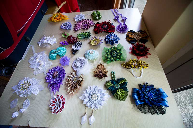 Arra a kérdésünkre, hogy hogy bukkant a kanzashira, elárulta, hogy unatkozott és az interneten elé került egy videó, ami után jött a következő és következő, ami már generálta azt, hogy kipróbálja ezt a hajtogatásos technikát. Megtetszett neki, elkapta a láz, elszabadult a fantáziája és az egyik jött a másik után. Szatén szalagokból összerakott karácsonyfadíszt, hajcsatot, kitűzőt, menyasszonyi örökcsokrokat, menyasszonyi kiegészítőket, karpántokat, ékszerdobozokat, táska- és ablakdíszeket készített, de a felhasználási területeknek csak a képzelet szabott határt, mondta.