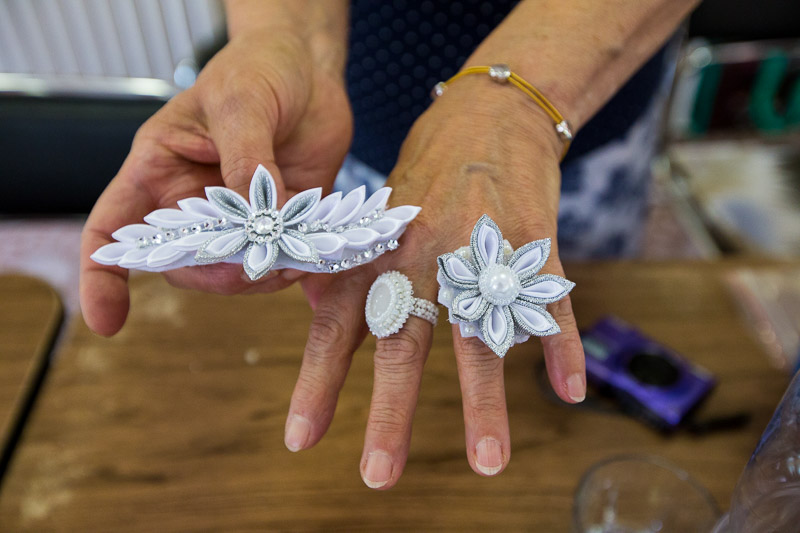 Az idén nagyon távoli vizekre eveztek, egészen Japánig, a kanzashi világáig. Az ezzel a szalagtechnikával készült díszekkel a gésák ruháját egészítették ki. A díszeknek a mintázottsága jelezte a gésáknak a gésaházban elfoglalt helyét. Minél díszesebb volt annál magasabb rangot bírhatott magának a házban, tekintett vissza a tradicionális technika történelmi hátterére a hétvége közelebbi víz mellől, Szolnokról érkezett oktatója, Fejes Mihályné.