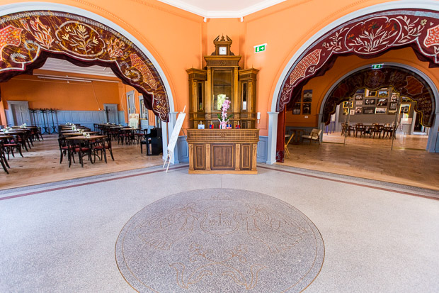 Közelebb érve az épülethez láthatjuk, hogy speciálisak a nyílászárók is. Az eredeti tervek szerint helyreállított nyílászárókban nagyon sok kézműves, fafaragási munka van. Egyedi a kialakításuk, a méretük és a díszítésük is a szecessziós jelleg miatt, ami nem kis kihívást jelentett a cégnek, mivel mindent saját asztalosai gyártottak.