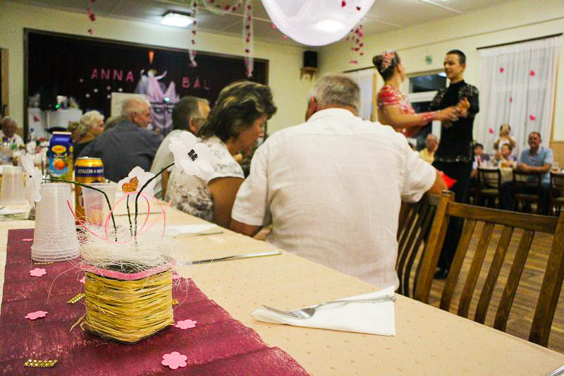 A balatonfüredi Anna-bállal ellentétben a hangsúly nem a fényűzésen és a csillogáson, hanem a közösségen és a jó hangulaton volt. A szervezők arra is ügyeltek, hogy a Művelődési Központ ünnepi köntösbe öltözzön, a talpalávalóról pedig egész éjjel a Csabacsűdi Cimborák gondoskodtak.
