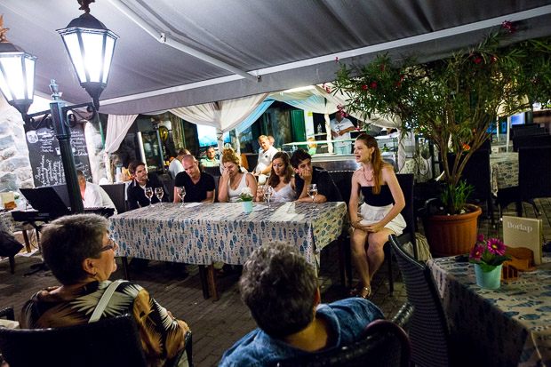 Vasárnap este Szarvasra is elért a vihar, de mintegy 10-15 fő ott állt a Vízi Színház bejáratánál, és várta hátha eláll az eső. A házigazda, Hajdú Pál a Tessedik Sámuel kertbarát Kör titkára is az eső elálltában reménykedett. De a Jókai Színház nézőtéri ültetőjének vezetője azt közölte, sajnálja, de elmarad az este. Ingadozott az áram, a berendezések épsége érdekében így kellett dönteniük. Aztán valahogy mégis úgy alakult, hogy a TURUL Vendéglő befogadta a maroknyi nézőt és a Kaposvári Egyetem hat fiatal hallgatóját művésztanárukkal. Vagyis a fiatal művészpalánták megtartották a 10-15 nézőnek estjüket, ami minden elismerést megérdemel. De igazából az előadás végén jöttem rá, számukra természetes lehetett, hiszen olyan lazán, adták elő a verseket, prózát, és énekelték a dalokat, mintha egymás között lettek volna, baráti társaságban. Valószínű szeretik azt, amit tanulnak, ez érződött egész előadásukon, mert teljes szívvel-lélekkel adták elő műsorukat. A művészek nem csak Adyt mondtak, hanem Hubay Miklós – Vas István – Ránki György, Egy szerelem három éjszakája című zenés darabjából több ismert dal is elhangzott (a Planta-dal vagy Melitta érzelmes dala), de elhangzott franciául is és magyarul is a L’adieu azaz a Búcsúdal, amely Guillaume Apollinaire verse Vas István fordításában.