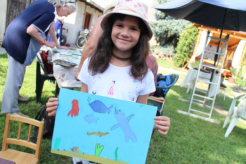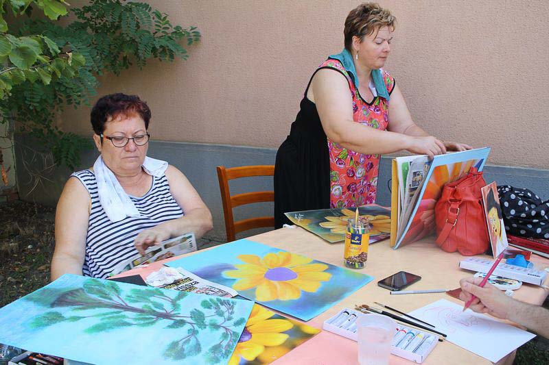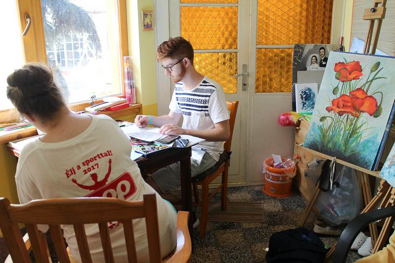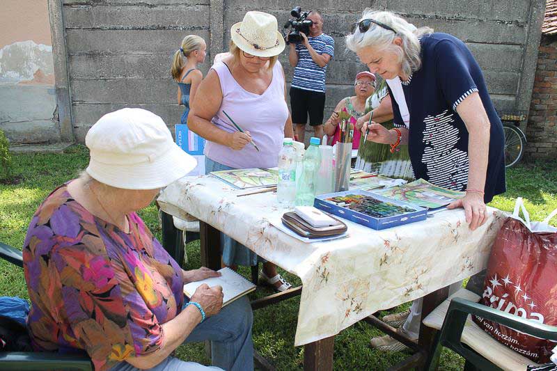 – Közel 30 éve, 1990 óta ismerem Ilikét, még Budapestről, a IX. kerületből. A Bakáts Téri Általános Iskola rajztanárként és a kerület munkaközösség vezetőjeként dolgoztam, és nyaranta rendszeresen találkoztunk művésztelepeken és a művésztanárok kiállításain. Sokat dolgoztunk együtt, kiállításokat szerveztünk, együtt örültünk a gyerekek alkotásainak és egymás fejlődésének – mesél barátságuk kezdetéről Füriné Babits Ágnes, akinél egyébként a Babits nem csupán névrokonság. Nagypapája unokatestvére volt ugyanis a XX. század egyik legnagyobb költője. A táborba ő maga már másodjára tért vissza.