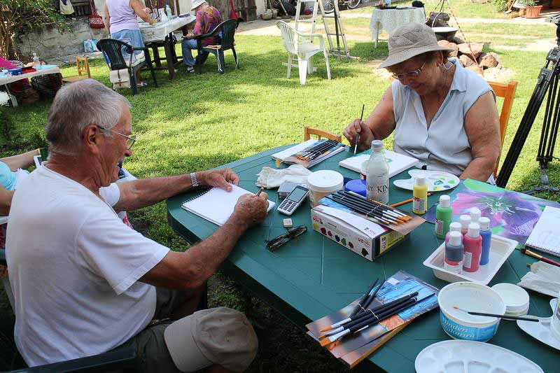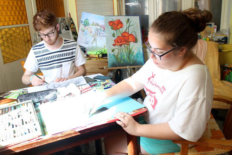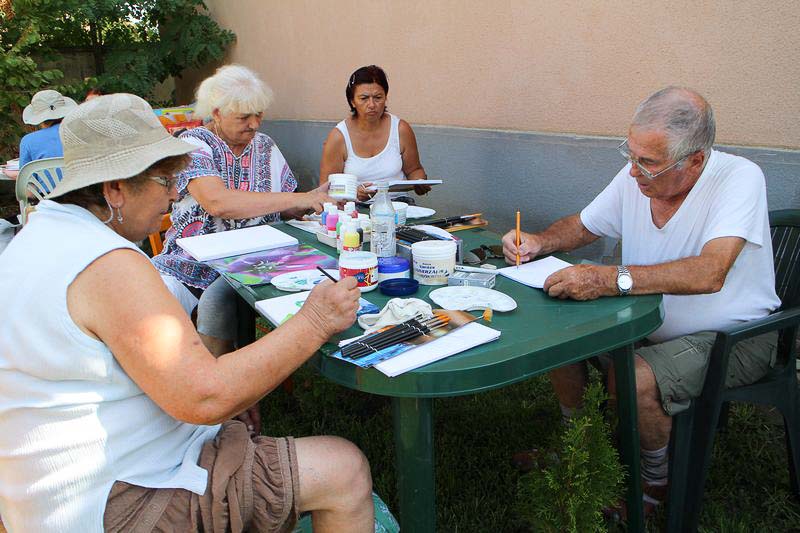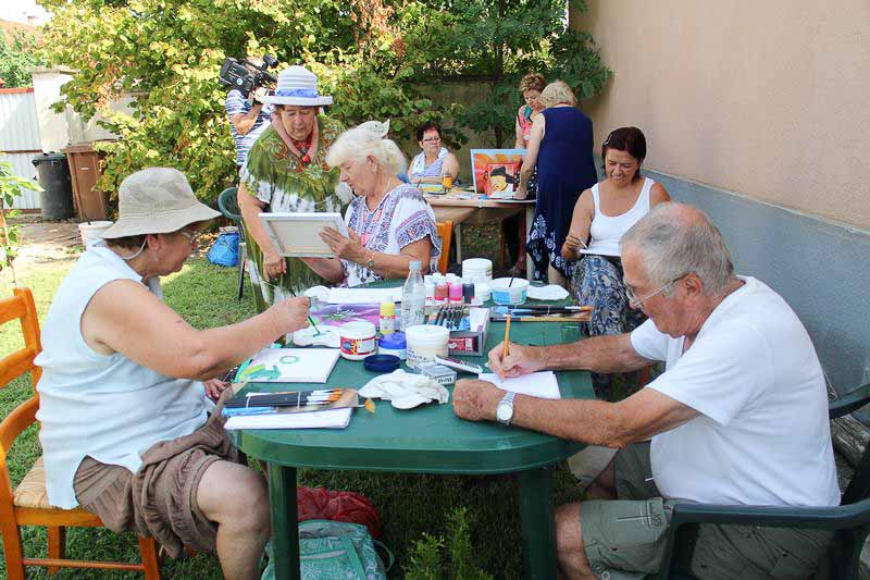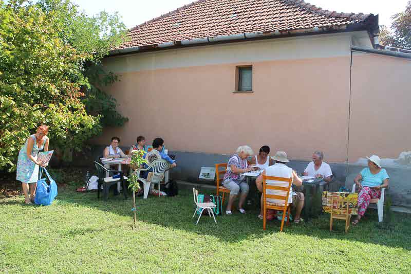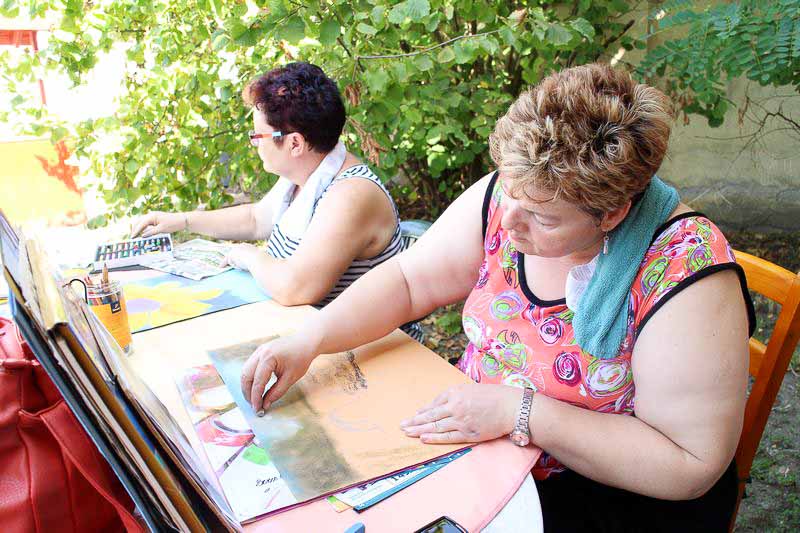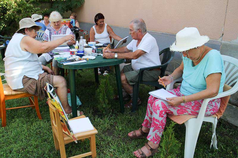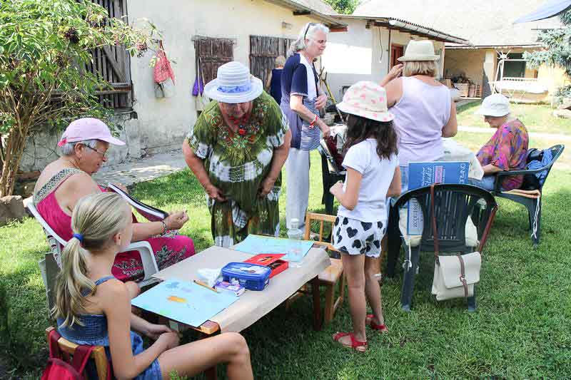 – Ebbe a táborba bárki eljöhet, mindenkit szívesen látunk. Idén kiterjesztettem a felhívást az Országos Képző-és Iparművészeti Társaságra, a Magyar Rajztanárok Országos Egyesületére és Szarvas Város Barátainak Körére is, ahonnan jó néhányan csatlakoztak hozzánk. Többen már a kezdetektől velünk vannak, de mindig vannak újak is. S bár elsősorban felnőtteknek szól a tábor, befogadtunk két tizenkét éve kislányt is, akik nagy lelkesedéssel rajzolnak – mondja kipirultan a táborvezető.