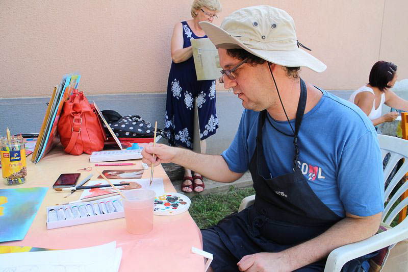 A pasztelltábor idén augusztus 7-11-e között került megrendezésre. A programokba a táborvezető kisebb kirándulásokat és városnézést is becsempészett, de voltak olyan napok is, amelyeket reggeltől estig az alkotás határozott meg. Ilyen volt pl. a csütörtök, amikor az alkotófolyamat összemosódott a mindennapi örömökkel.