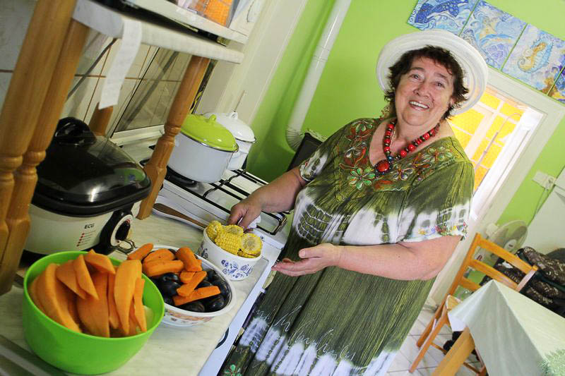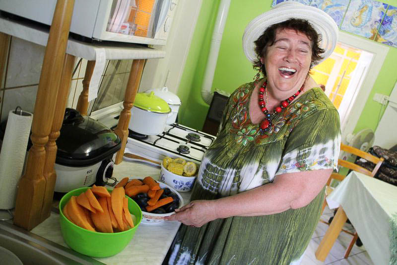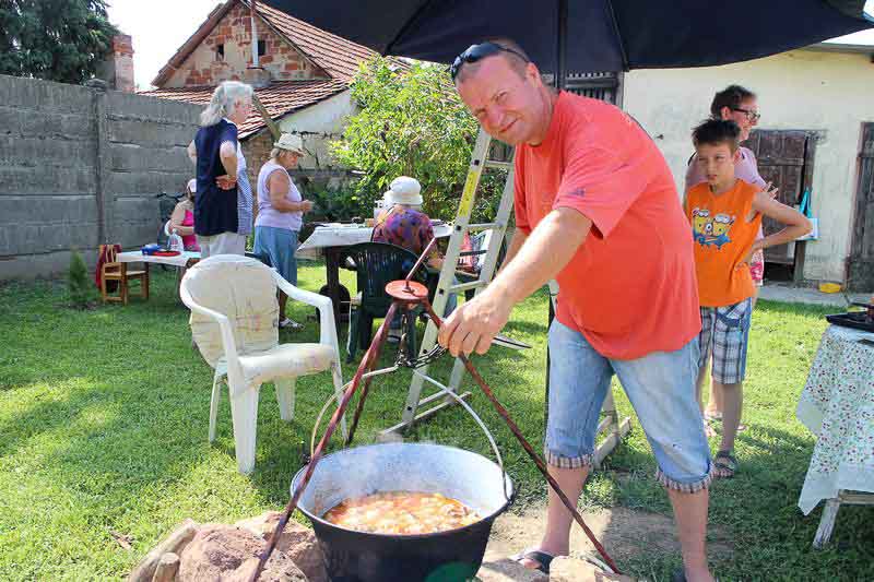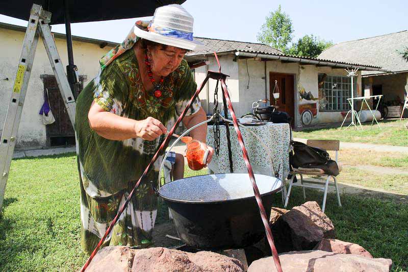 A mindig mosolygós mester ugyanis egész nap tyúkanyó módjára tüsténkedett. Amíg a tanítványok az árnyékba húzódva színeket és hangulatokat festettek a papírra, addig ő szemmel tartotta a bográcsot, amelyben az ebédrevaló rotyogott. Közben fél lábbal már a konyhában volt, ahol a pulton hámozott a gyümölcsök és zöldségek sorakoztak, az ablakban pedig egy mákos sütemény várt az utolsó simításokra.