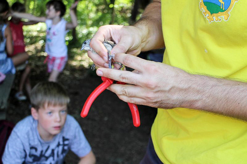 A statisztikai adatokról szólva elmondta, éves szinten mintegy 200 ezer madarat gyűrűznek meg, amelyek mindegyike bekerül egy nemzetközi adatbázisba. Ezek alapján olyan hasznos kérdésekre kapnak választ, mint az adott faj élettartama, vonulási területe vagy pl. a preferált élőhelye, amelyek később a természetvédelmi tevékenység alapjául szolgálnak. Ottjártunkkor 3 faj összesen 9 énekesmadarat figyelt meg közelebbről, a gyerekek érdeklődő tekinteteitől övezve.