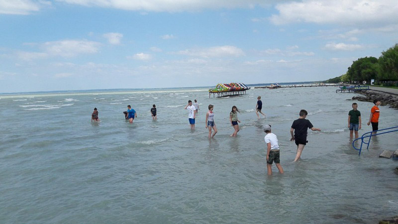 Mivel az időnk nagyon eltelt, így szaporázni kellett a lépteinket, hogy a vacsorára időben hazaérkezzünk. Azonban ez a nap sem telt el fürdőzés nélkül. Ekkorra már az igazi kánikulai napsütés kellően felmelegítette a tó vizét ahhoz, hogy mindenki bátran élvezhette a magyar tenger kellemes vizét.