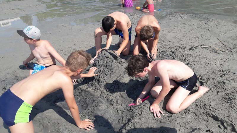 Csütörtökön tombolt a kánikula. Emiatt változtattunk egy kicsit a programon, és délelőtt 11 óráig a Balatonban töltöttük el az időt. A nagy hőség miatt kicsit később kezdődött a délutáni fürdőzés, de „kárpótlásul” sötétedés után is kimentünk a vízbe, ami mindig nagy élmény a gyerekek számára. Ez a nap volt a táborozás legforróbb napja, amit a vízben töltött idő tett elviselhetőbbé.