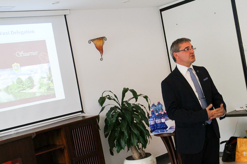 – Wuxi és Szarvas már több mint egy évtizedes kapcsolatot ápol. Ezek a testvérvárosi látogatások egymás megértésének nagyon fontos eszközei, és nagymértékben hozzájárulnak a kulturális különbségek legyőzéséhez. Reméljük, hogy ez a látogatás egy új, akár gazdasági platformot nyithat az együttműködésben. Keressük a saját erősségeinkre épülő lehetőségeket, mint pl. az elektromos kerékpárok, amelyek iránt Szarvas város polgármestere kifejezett érdeklődést mutatott. Erre való tekintettel a delegáció tagját képezi a gyártó cég igazgatója is – utalt a továbblépési irányokra Mr. Xu Yiping, a wuxi-i városi tanács elnöke.
