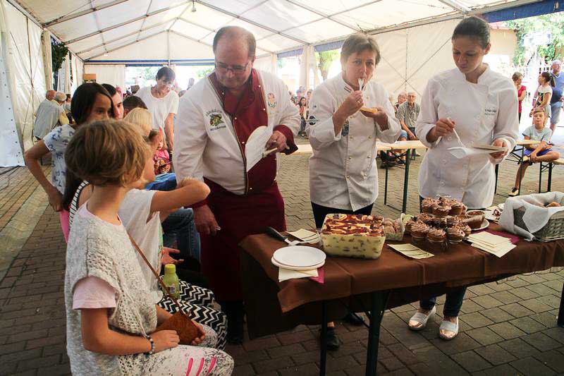 A döntő helyszíne idén a fesztiválsátorra esett, ahová délelőtt egymás után érkeztek a mutatós kreációk. Készítőik még gondosan elrendezték őket a tányéron, utolsó finomításként pedig sokan egy leheletnyi dekorációval tökéletesítették desszertjüket. A meghirdetett időpontban már valamennyi sütemény az asztalon sorakozott, és sok-sok kíváncsi szempár tapadt a fehérruhás zsűrire. A tavalyihoz hasonlóan ezúttal is Erdős Hanna olimpiai-és világbajnok mestercukrász, Urbán Ildikó cukrászmester, Sárkány Mihály cukrászmester és Urbán Ildikó cukrászmester elemezték a háziasszonyok munkáit, a nevezők pedig próbálták az arcizmaik rezdüléséből és gesztikulációikból leszűrni a véleményüket. Közel egyórányi konzultáció után megszülettek a végleges döntések.