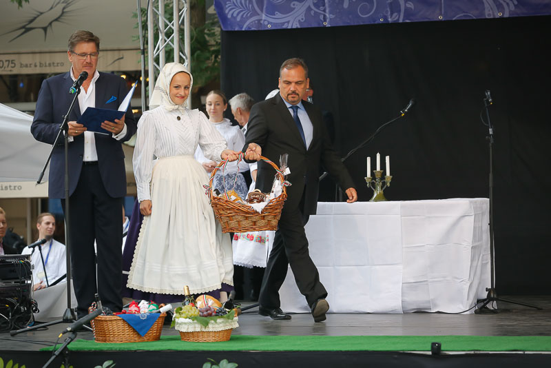 Az esemény rangjának emelése érdekében 2015-ben egy új, ünnepélyes programelemmel is bővült a Magyar Értékek Napja: minden megye egy-egy kiemelt, jellegzetes értékét vagy azt szimbolizáló termékét ökumenikus szertartás keretében áldották meg. Békés megye kosarát kolbász, pálinka, méz, lekvár, tészta és libamáj gazdagította. A termékkosarat és Békés megye díszzászlaját a Balassi Táncegyüttes tagjai vitték Zalai Mihály, a Békés Megyei Önkormányzat elnöke kíséretében. A terményáldás után a kosarat a Magyar Értékek Vándortérképén helyezték el.