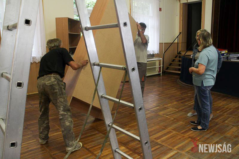 Hozzátette, a költözésnél külön nehézséget jelentett, hogy a művelődési házban nem volt riasztórendszer kiépítve, valamint a telefon és internet szolgáltatás is hiányzott. Ottjártunkkor épp ezeket a munkálatokat végezték a szakemberek, miközben egy iratokkal megrakott platós autó gördült a hátsóbejárathoz.
