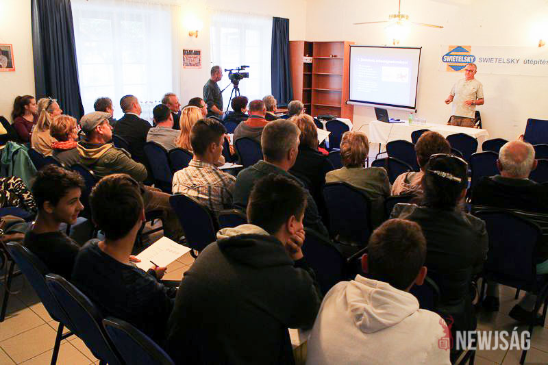 Az előadása során kitért a legfontosabb definíciókra és járművezetési helyzetekre, valamint egy animáció segítségével illusztrálta is a különböző útviszonyok baleseti következményeit.