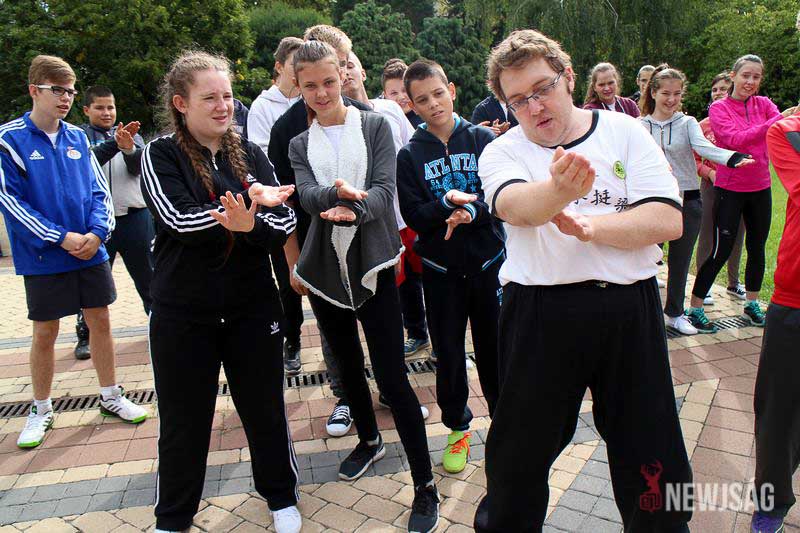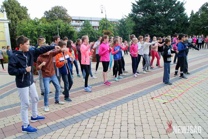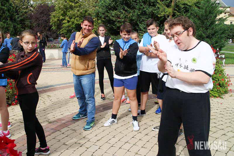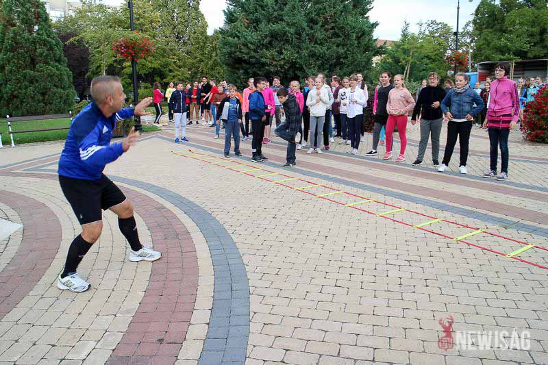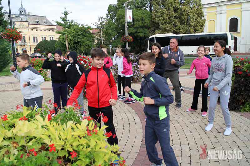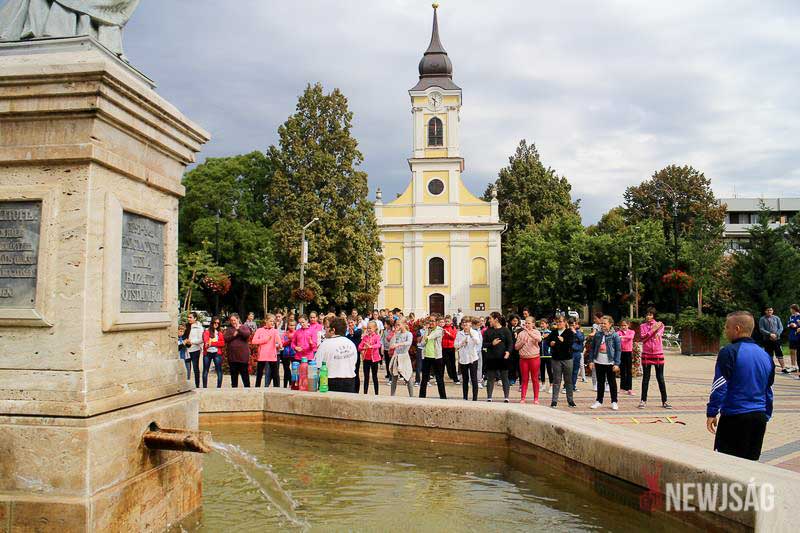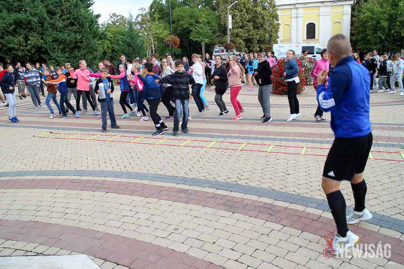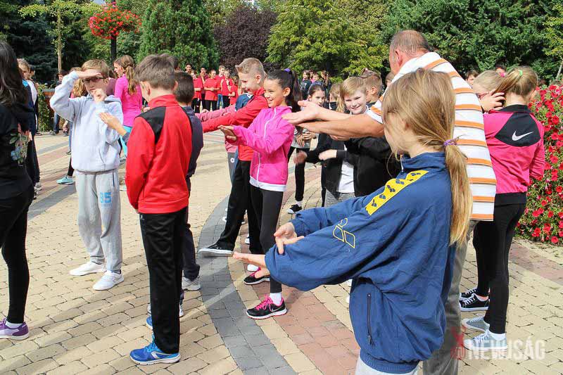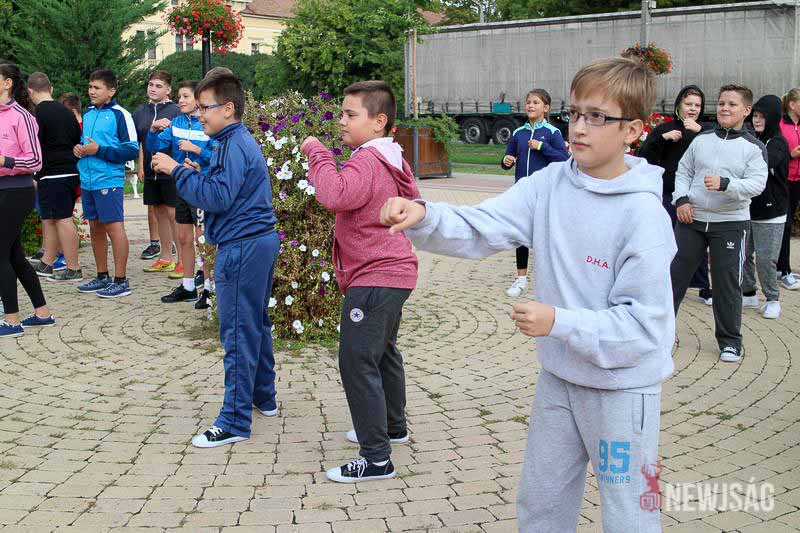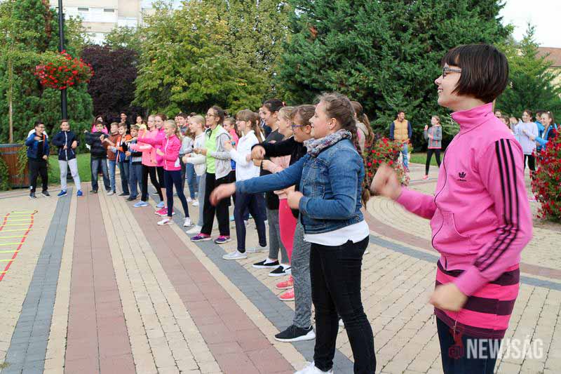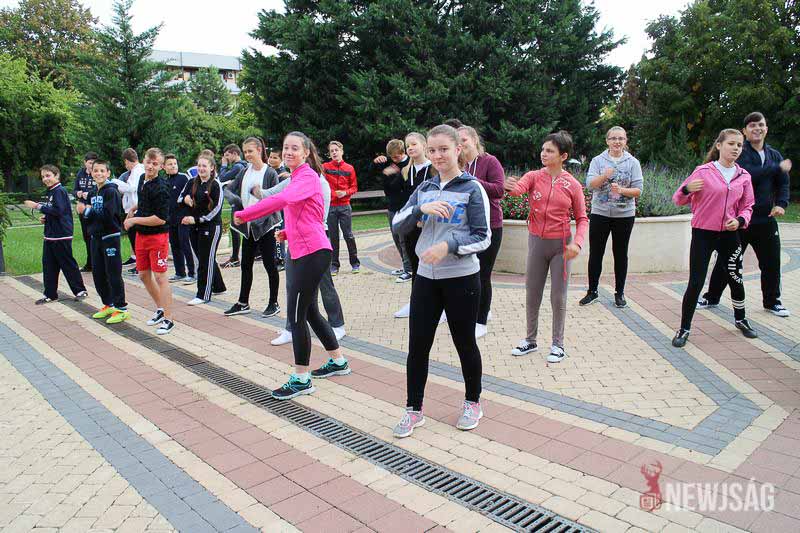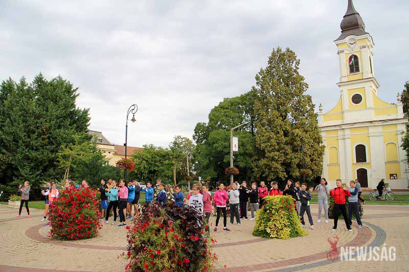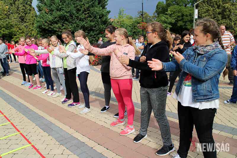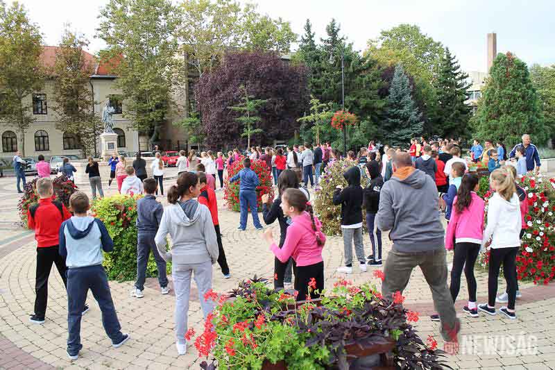 Szerencsés csillagzat alatt születtek a szarvasi mobilitási hét szervezői, hiszen az eső mindig csak kerülgette a rendezvényeket, de egyszer sem húzta keresztül a számításaikat. Így volt ez szeptember 19-én is, amikor a nap a mozgás jegyében telt. „Ugrálj, mozogj” mottóval délelőtt 10 órától közös edzésre várták az általános iskolák diákjait, a Szarvasi Fit Life Team Sportegyesület közreműködésével. A hangfalakból dübörgő ritmus a járókelők figyelmét is a helyszín felé irányította, a kezdési időpontra pedig a település valamennyi iskolájának egy-egy osztálya megérkezett.