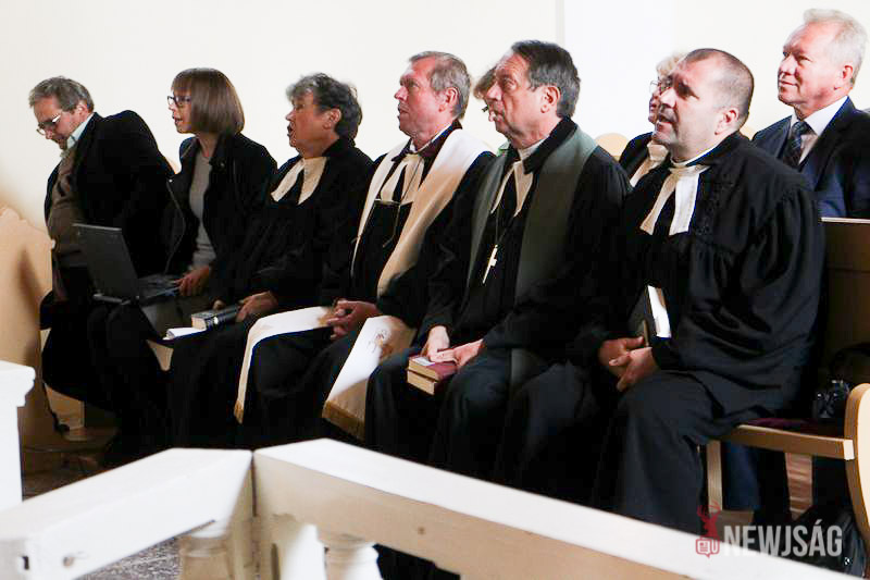 Láng Pál lelkész beszélt a húsz évvel ezelőtti zivataros időkről, amikor a csabacsűdi gyülekezetet társgyülekezetté szerették volna nyilvánítani, a lakosság azonban kiállt mellette. Arra kért mindenkit, hogy a hitüket ne Isten földi helytartójának személyéhez kössék, hanem Jézus Krisztus legyen az alfája és az omegája is. Hozzátette, a kötelező hit-és erkölcstan órák révén egyre többen ismerkednek meg a vallás alapjaival, és találják meg az utat a Jóisten felé. Mindazonáltal azt is látja, hogy a szülők egyre része nem segíti elő ezt a folyamatot, és gyakorolja a hitéletet gyermekével.