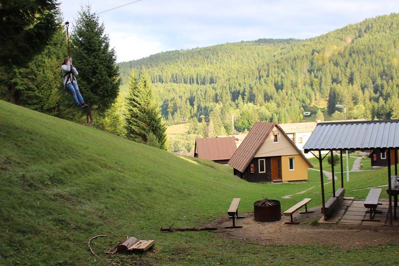 Másnap, hétfőtől megkezdődött a munka. Négy „osztállyá” szerveződött a létszám. Minden nap hétkor volt a „budíček” (ébresztő). A reggeli után 5 tanóra volt szlovákiai tanárokkal, természetesen szlovák nyelven. A gyerekeket négy kiváló szaktanár tanította: Elena, Dagi, Tono és Vilo. Az idei program fő témája Szlovákia volt. Minden tanórán az ország történetével, földrajzával, nevezetességeivel foglalkoztak. Mindemellett különböző társalgási témákat dolgoztak fel, melyek nagyban elősegítik a nyelvvizsgára készülő tanulókat is, valamint minden nap szlovák dalokat is tanultak. Délutánonként különböző foglalkozások voltak. Hétfőn, az időjárás kedvezett nekünk, így begyalogolhattunk a faluba, hogy már az első napon elővehessük szlovák ismereteinket, s vásárolhassunk a helyi boltban. Este két animátor (Matyka és Dominika) vezényletével öt csapatra oszlott a társaság, amely csapatok a tábor végéig versengtek egymással. Volt mozizás a klubteremben, melynek keretében egy szlovák filmet tekintettünk meg. Szerdán meglátogatott minket a Határontúli Szlovákok Hivatalának elnöke, Ján Varšo, délután pedig shoppingolhattunk a besztercebányai bevásárlóközpontban. Aznap este „Hroneci Talent” verseny volt, ahol az első és harmadik helyezést csabacsűdi tanulók érték el. Csütörtökön ellátogattunk a Besztercei-barlangba, ahol a téli időszakban több száz denevér alussza téli álmát. Sajnos most egy denevérrel sem volt szerencsénk találkozni. Pénteken kegyes volt hozzánk az időjárás, s így megvalósulhatott a mindenki által várt és kedvelt sportprogram. Volt itt kötélmászás, falmászás, íjászat és légpuskával is célba lőhettek a gyerekek. Hatalmas élmény volt a pénteki nap, hiszen a Magas Tátrába a Csorba tóhoz kirándultunk. Lanovkával mentünk a hegycsúcsra, ahol megcsodálhattuk a táj szépségét, láttunk hófödte hegyeket és közösségi oldalakra szánt fotók is elkészültek.
