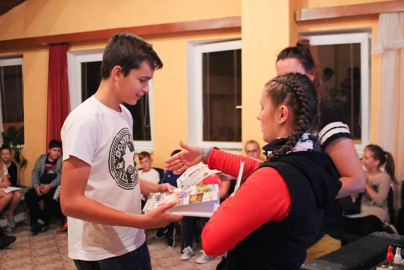 A zárónapon, a tanórákon játékos formában búcsúztak el egymástól az egy hétre összekovácsolódott hroneci osztálytársak, s a szlovákiai pedagógusok oklevéllel, és egy kis apró ajándékkal jutalmazták meg a legaktívabb tanítványaikat. Iskolánkból Balogh Alexandra, Szabó Alexa ötödik osztályos tanulók, Gurszki Fruzsina, Szakács Kamilla hetedik osztályos tanulók „zsebelték” be ezt az elismerést.