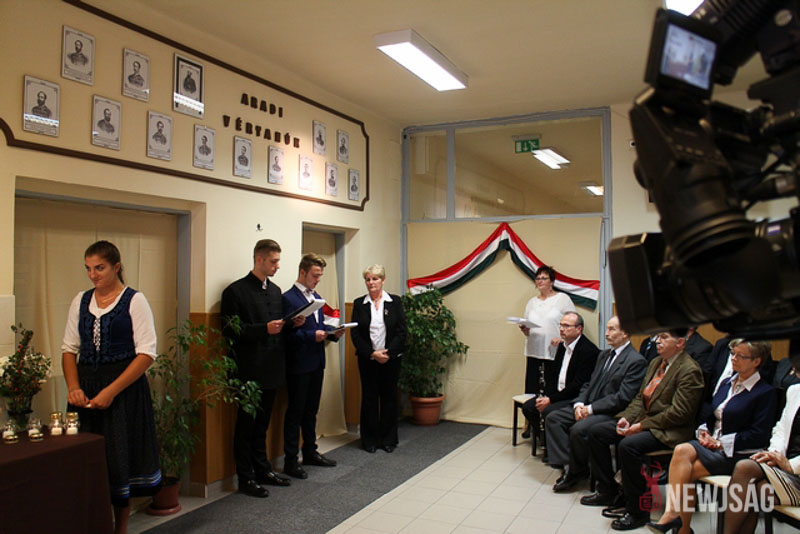 – Ha megkérdezünk egy átlag magyart, hogy a polgári átalakulás követeléseiből, a 12 pontból mennyit tud felsorolni, talán négyre-ötre emlékszik. Ha a dicsőséges időszak lezárásáról és az aradi vértanúkról faggatózunk, a legtöbben két-három névnél megakadnak. Ezért úgy gondoltuk, hogy méltó emléket próbálunk állítani a kicsit elfelejtett aradi tizenháromnak. Bízunk benne, hogy diákjaink, nap mint nap elhaladva az emlékfal előtt, és rápillantva a nevekre, idővel emlékezetükbe vésik valamennyit, és mire a történelem érettségire kerül a sor, nem jelent gondot a 13 vértanú felsorolása – fogalmazta meg köszöntőjében a munkaközösség vezetője.